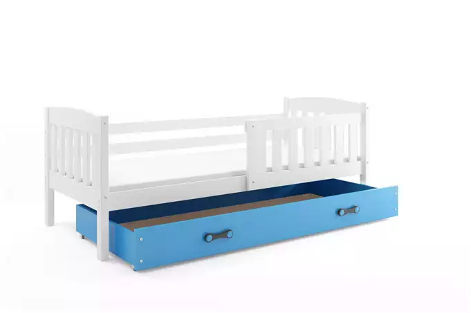 KUBUŚ viengulė vaikiška lova 80×160 su stalčiumi, balta/mėlyna