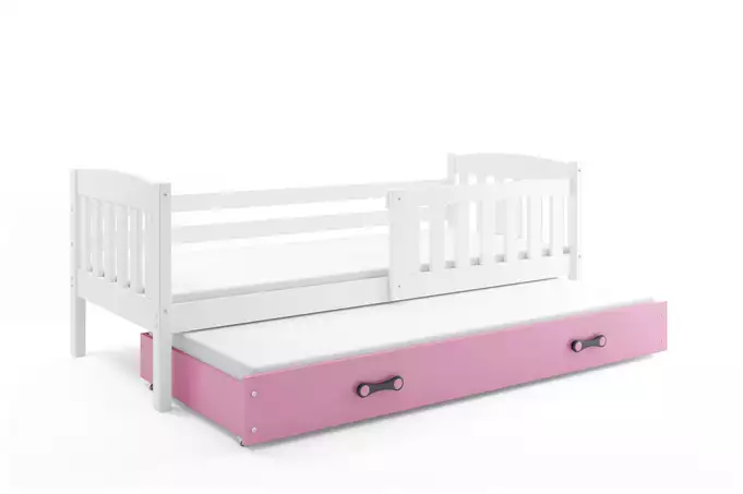 KUBUŚ išskleidžiama lova vaikams 80×160 su čiužiniu ir stalčiumi, balta/rožinė