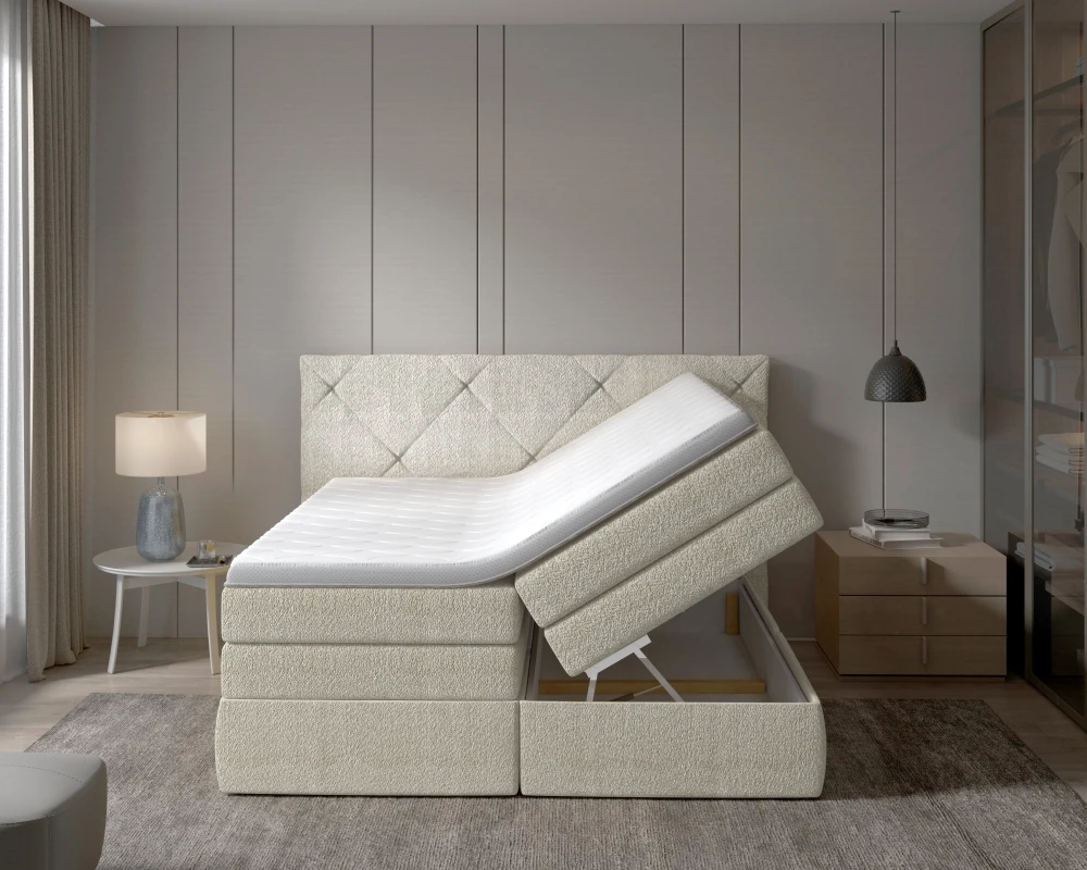 Кровать Lungo в континентальном стиле с красивым изголовьем, украшенным вертикальной и горизонтальной строчкой в форме буквы X. Кровать имеет два контейнера для постельного белья: для размера 140 – размеры контейнера 196х65х27 см, для размера 160 – 196х75х27 см и для размера 180 – 196х85х27 см. В цену входит: каркас с пружинным матрасом Bonnell и матрас с независимыми пружинами. Кровать доступна в размерах 140, 160, 180/200 см. Наматрасник приобретается отдельно.