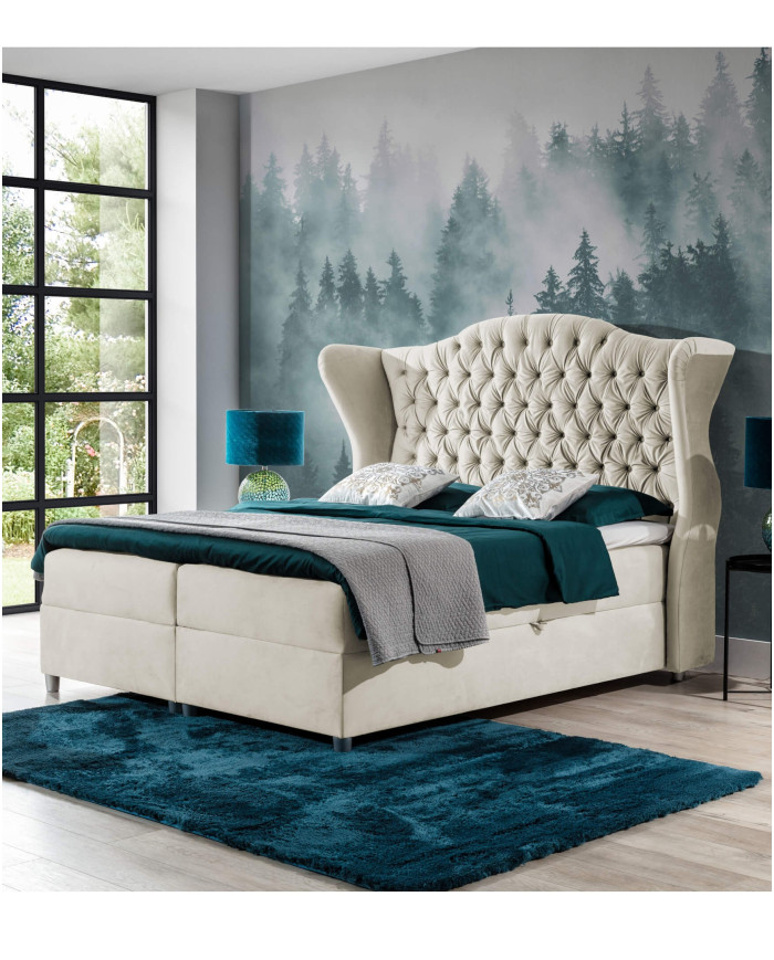 Livia kontinentinė lova 160×200, apmušta, čiužinys, čiužinuko užtiesalas, konteineris