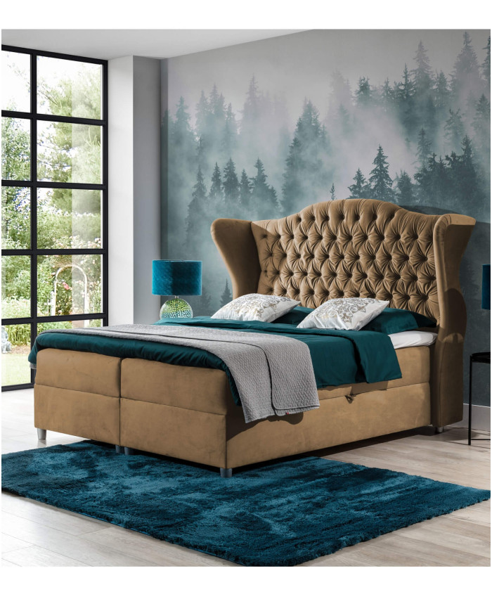 Элегантная континентальная кровать Livia Gruszka Meble отличается высоким, богато стеганым изголовьем, которое действительно привлекает внимание. Изготовленная из высококачественных материалов, она гарантирует долгие годы беспроблемной эксплуатации. Эта кровать идеально дополнит гламурные, классические и более современные спальни, став их венцом стиля! Кровать оснащена отделениями для хранения постельного белья, расположенными внизу и открывающимися с помощью пружинных механизмов. Над отделениями для хранения находится матрас с независимыми пружинами. Матрас-топпер из пенополиуретана покрывает всю кровать. Кровать Livia изготавливается на заказ с использованием обширной коллекции тканей, доступной в конструкторе изделий.