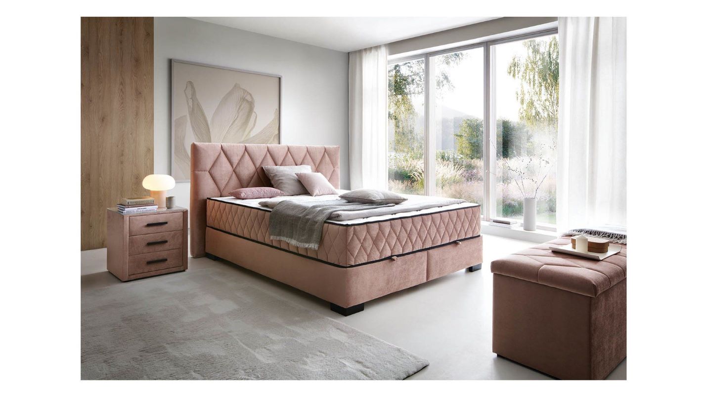 Product code FL-LO_KT-REVE-160X200-G2-AMON_21 Length 213 cm Width 183 cm Height 114 cm Seat height 59 cm Collection Reve Color Amon 21 Shade pink Style glamorous Material velvet Sleeping function with sleeping function Sleeping area 160×200 Container with container Filling pocket spring Manufacturer Black Red White Furniture type Beds VAT tax 23%