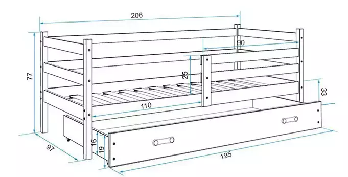 Каркас кровати – изготовлен из сосновой древесины, покрытой лаком на водной основе.