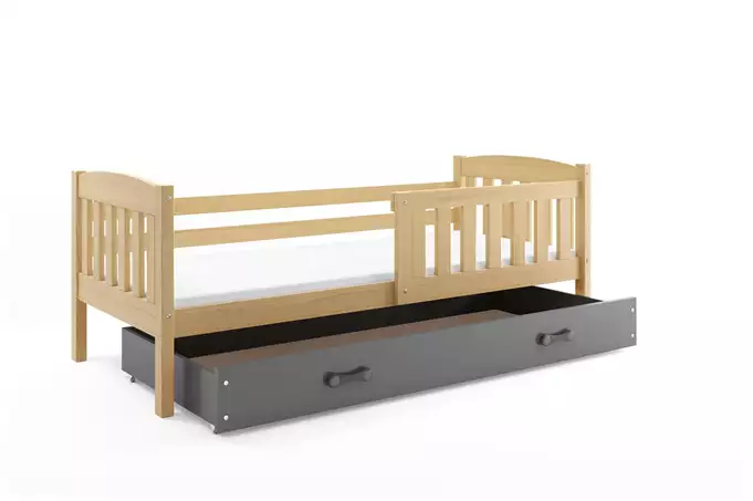 KUBUŚ viengulė jaunimo lova 80×190 su stalčiumi, pušis/grafitas