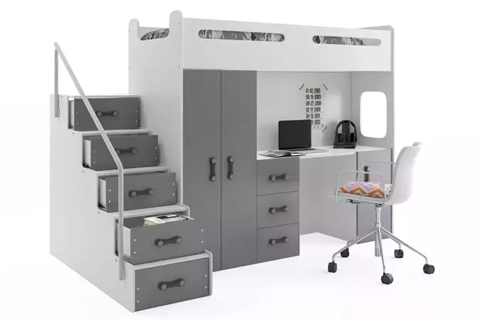 MAX 4 viengulė jaunimo lova 80X200 su čiužiniu ir stalu, grafito spalvos