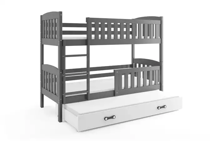 KUBUŚ 3 asmenų jaunimo lova 90X190 su stalčiumi, grafito/balta