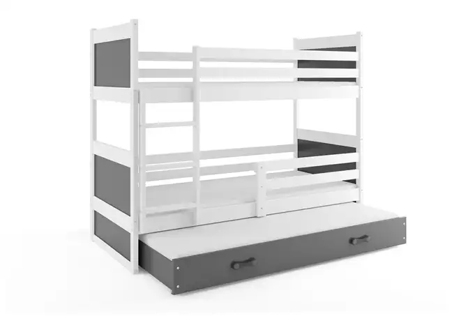 RICO 90X190 trijų asmenų jaunimo lova su stalčiumi, balta/grafito spalvos