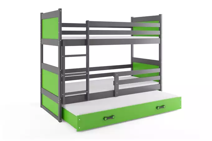 RICO 90X200 trijų asmenų jaunimo lova su čiužiniu ir stalčiumi, grafito/žalia