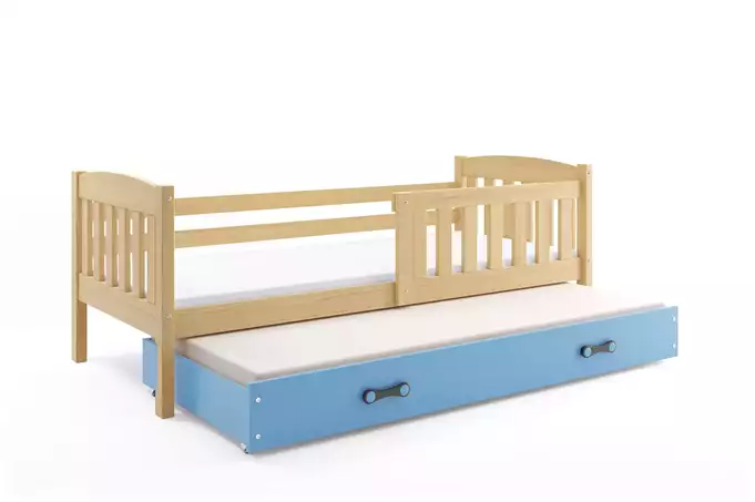KUBUŚ jaunimo išskleidžiama lova 90×200 su čiužiniu ir stalčiumi, pušis/mėlyna