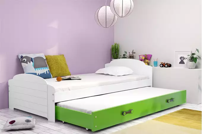 LILI 90×200 jaunimo išskleidžiama lova su stalčiumi, balta/žalia
