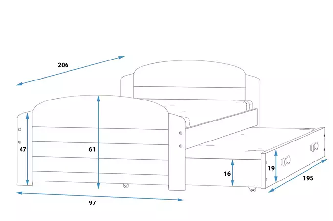 Выдвижной ящик – изготовлен из ДСП, с дополнительной функцией спального места.