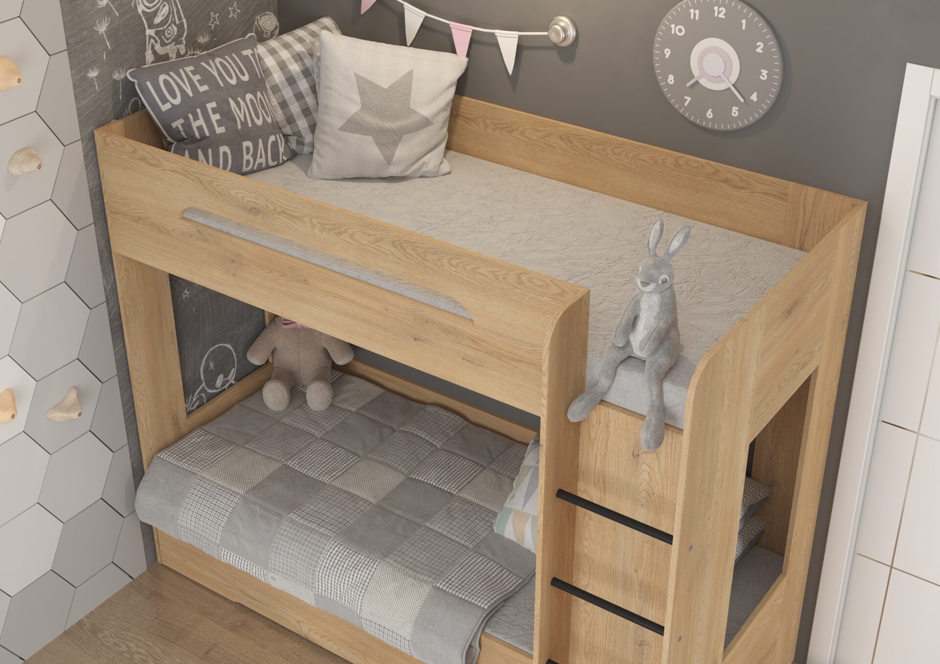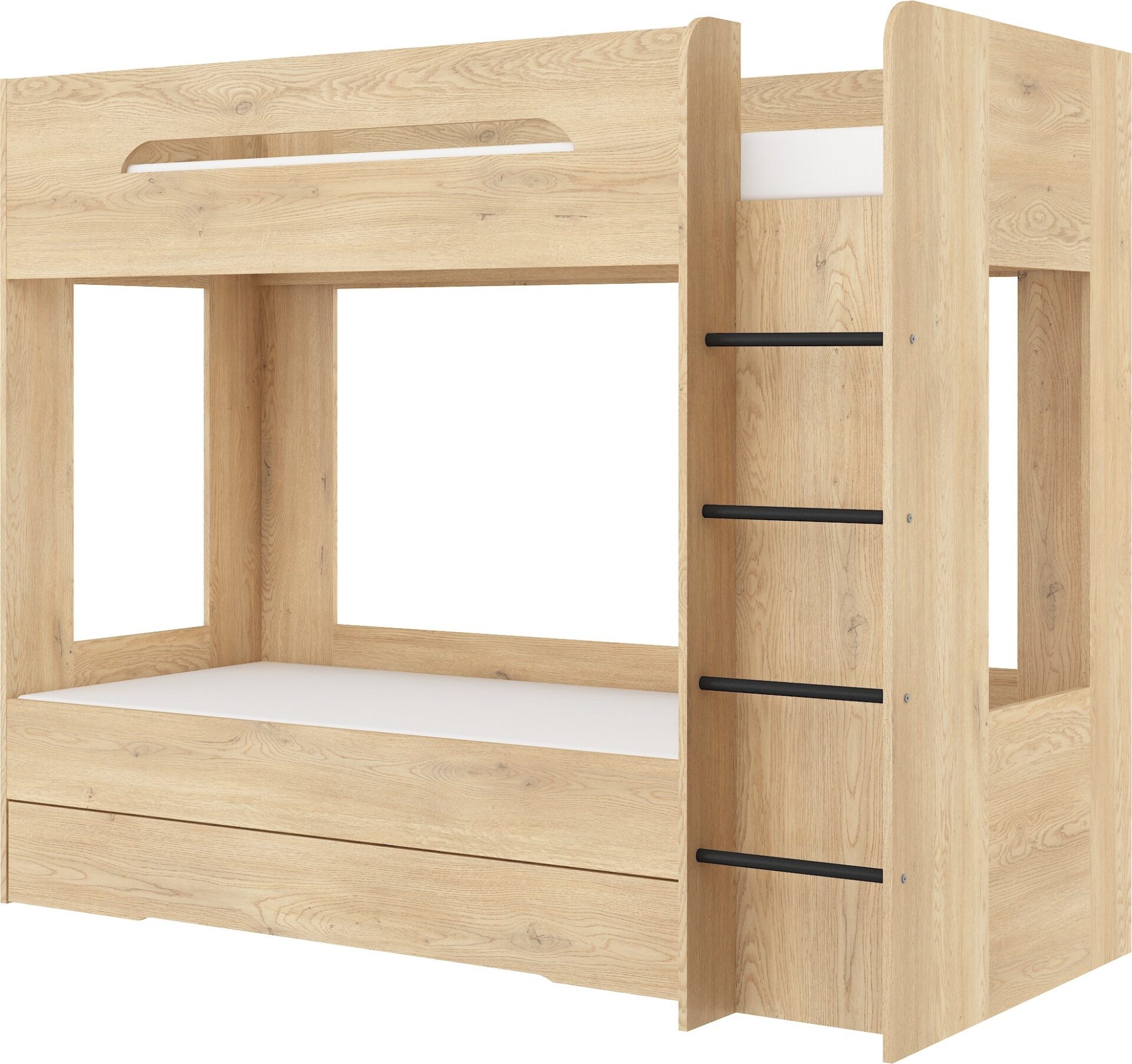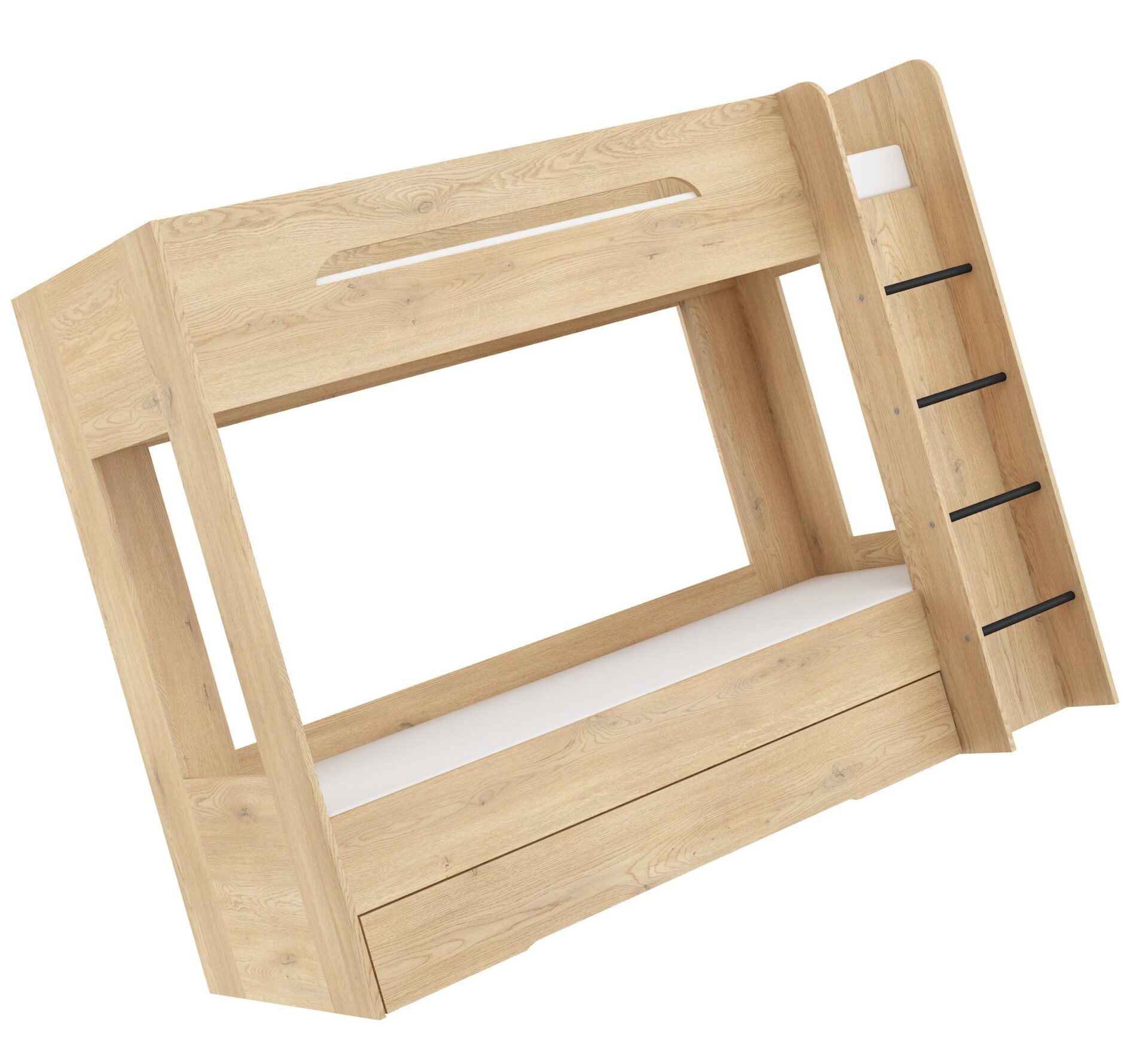 Двухъярусная кровать BLIN без матрасов, 80×200 см. Доска 16 мм, кромка из ABS-пластика, максимальная высота матраса 12 см. Цвет: кремовый дуб.