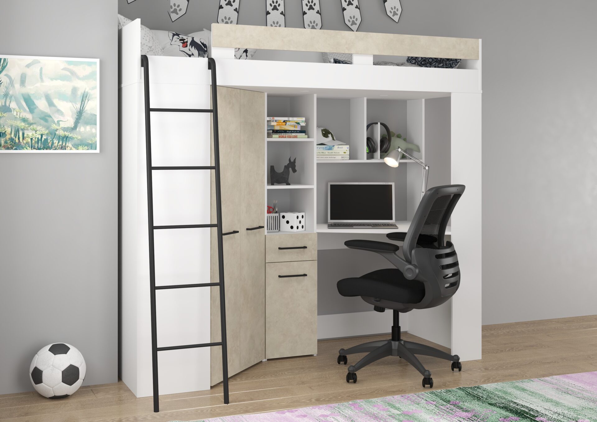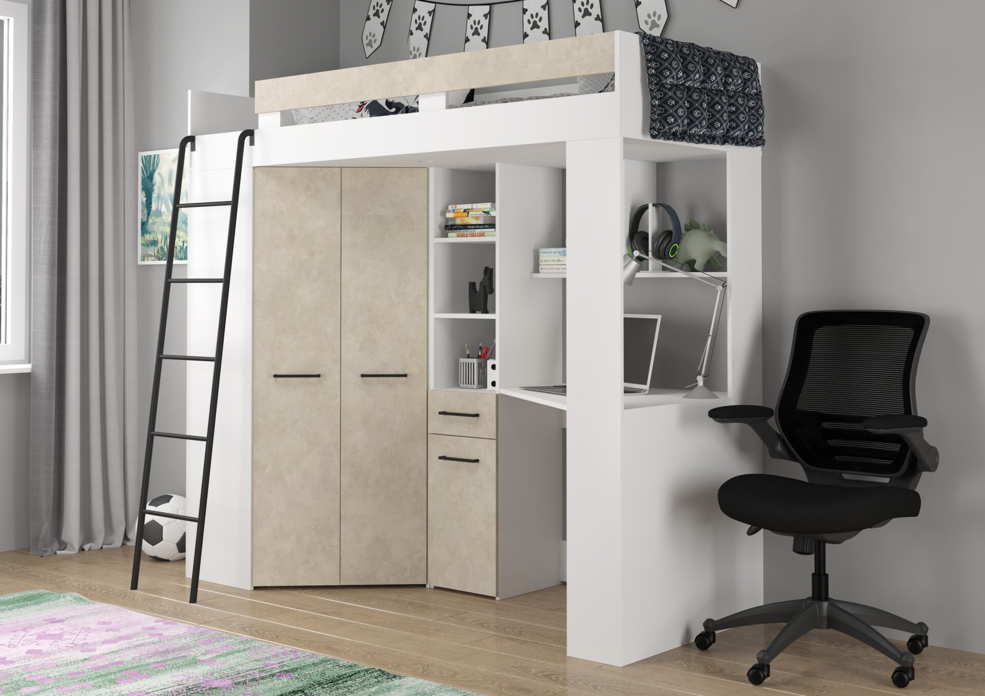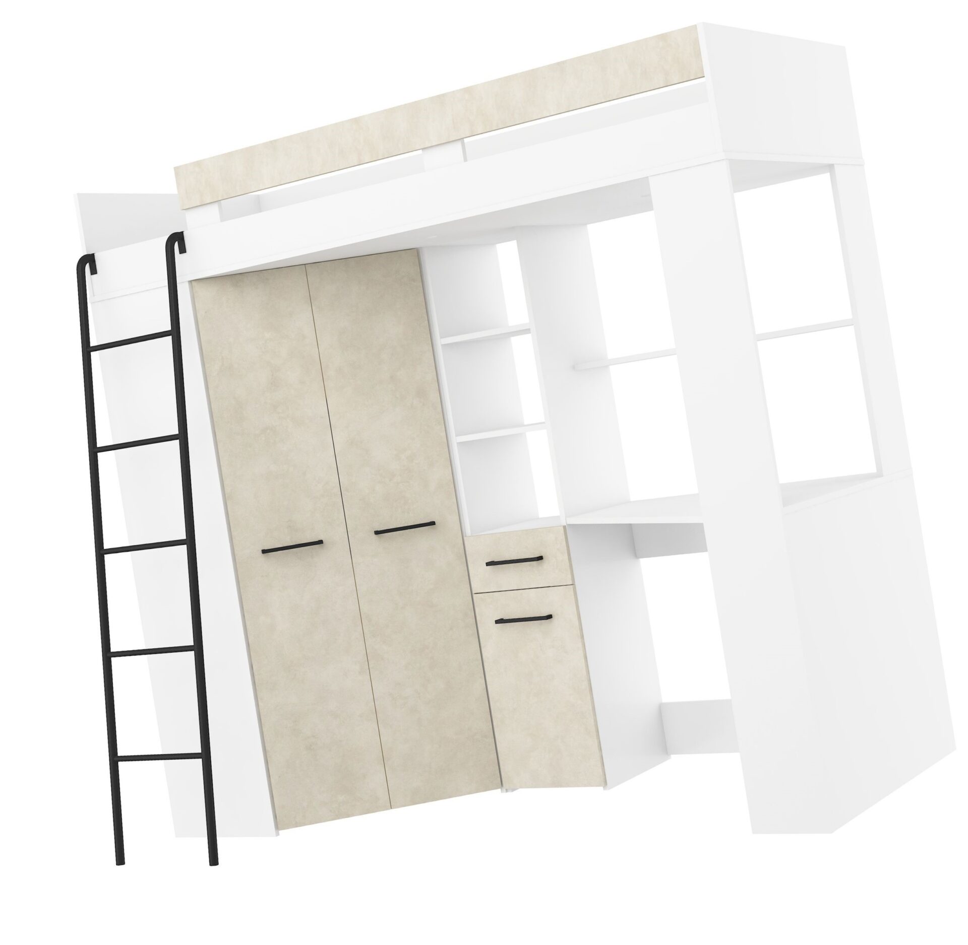 Антресоль FLO L без матраса 80×200, плита 16 мм, кромка из ABS-пластика, бесшумное открывание, максимальная высота матраса 12 см, цвет: белый / миндальный «гранада».