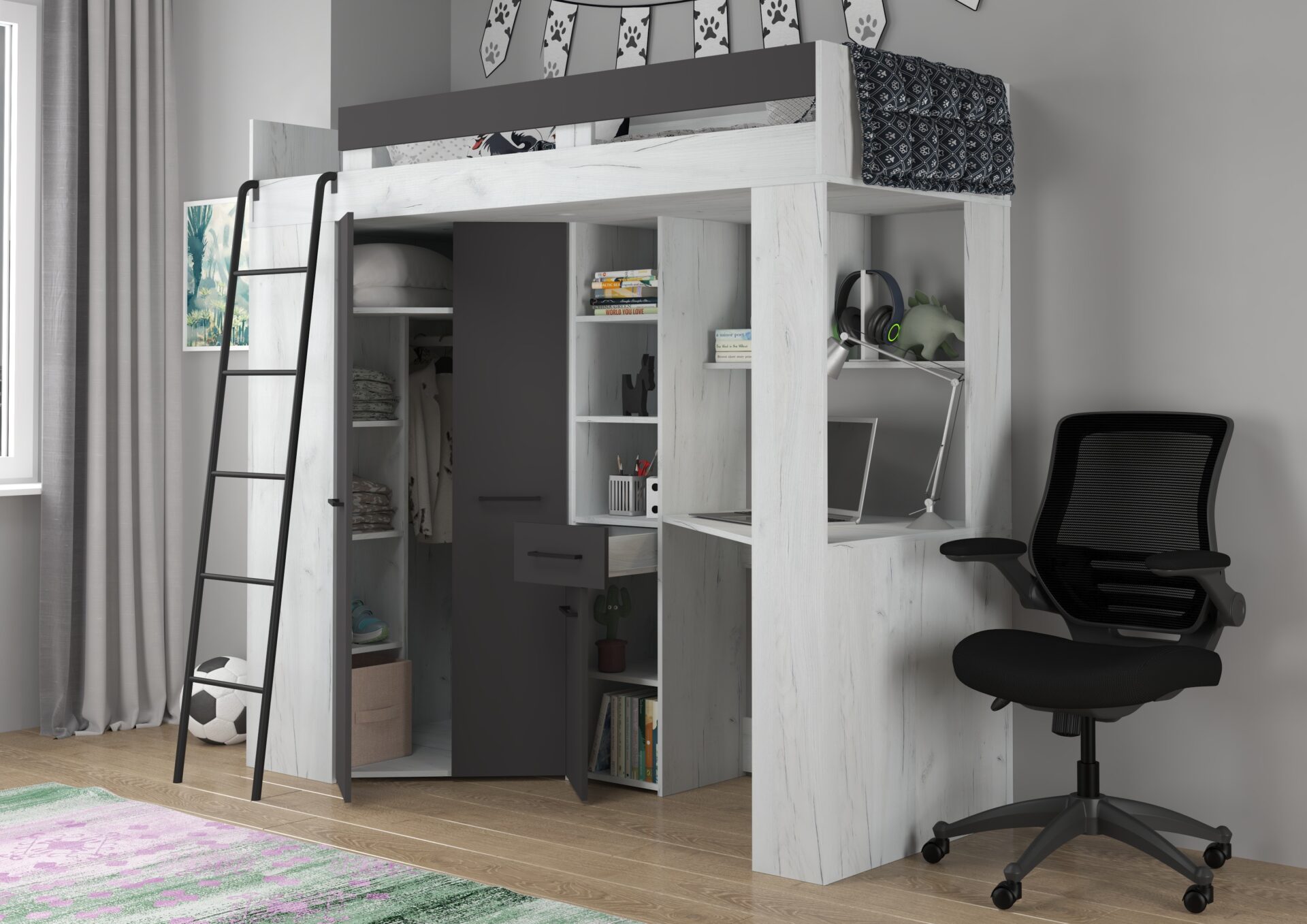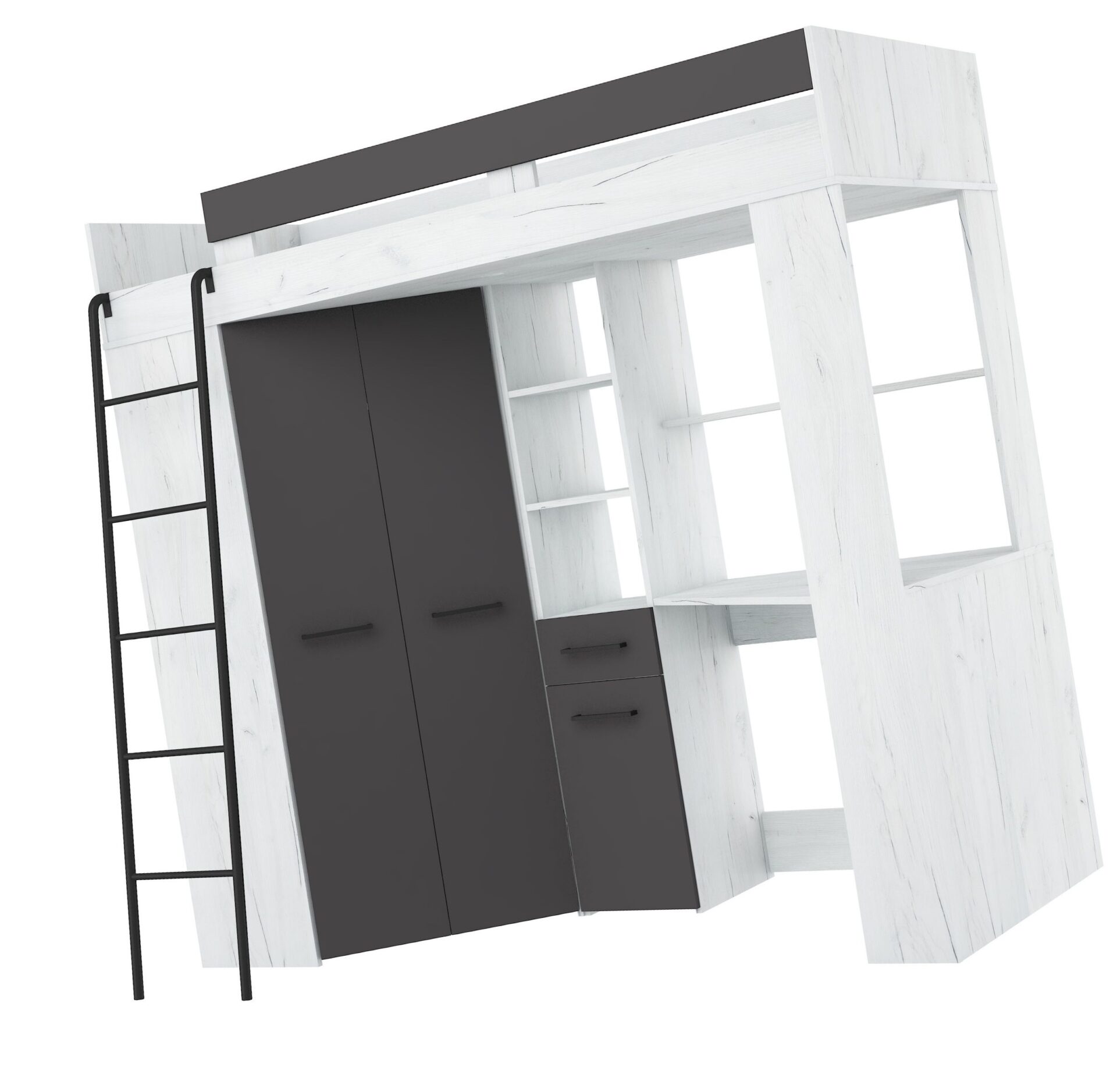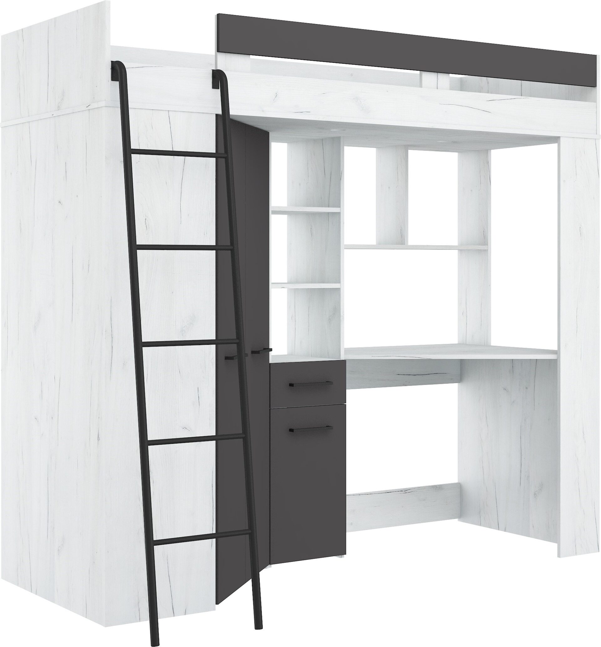 Антресоль FLO L без матраса 80×200, плита 16 мм, кромка из ABS-пластика, бесшумное открывание, максимальная высота матраса 12 см, цвет: белый дуб / графит
