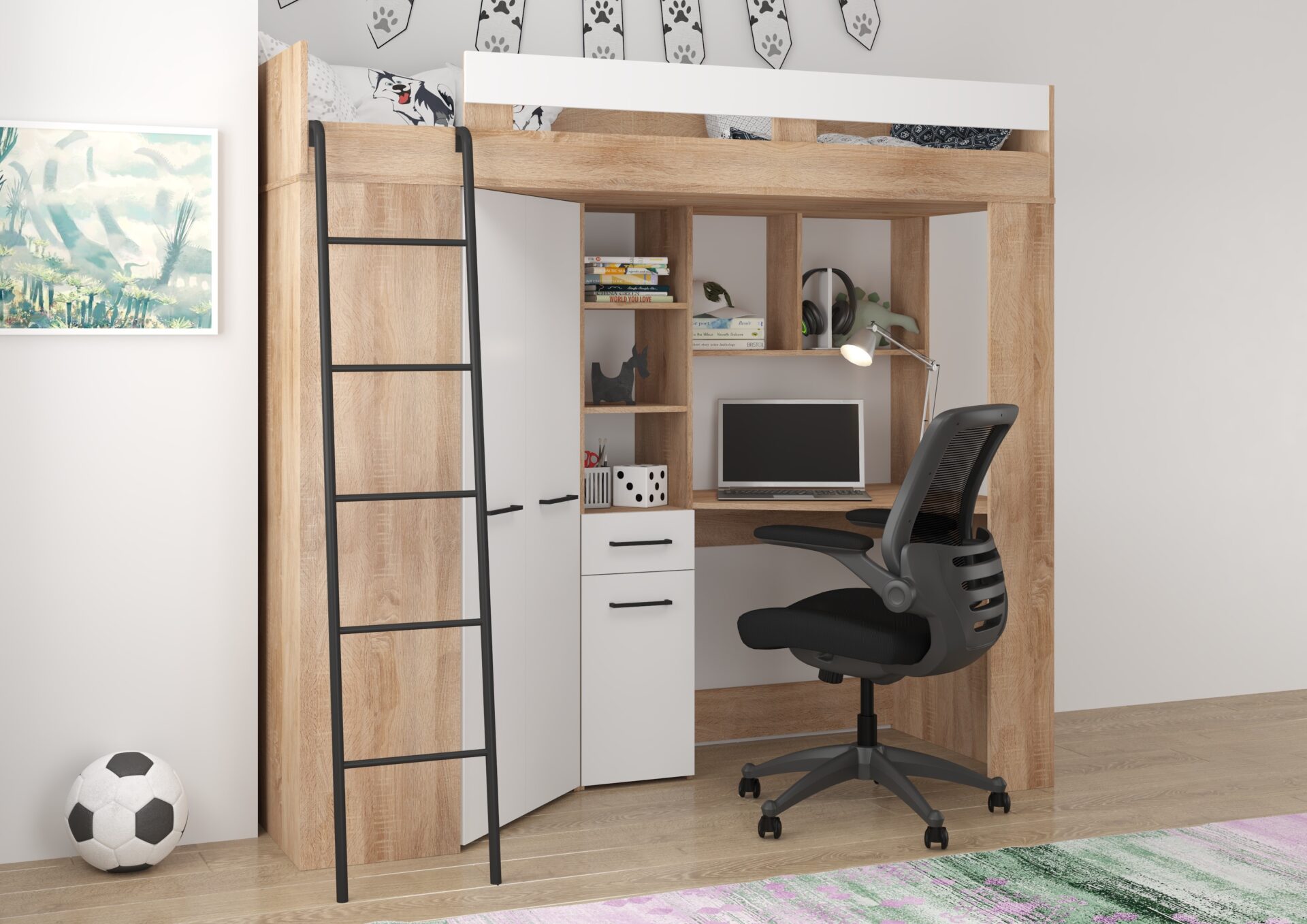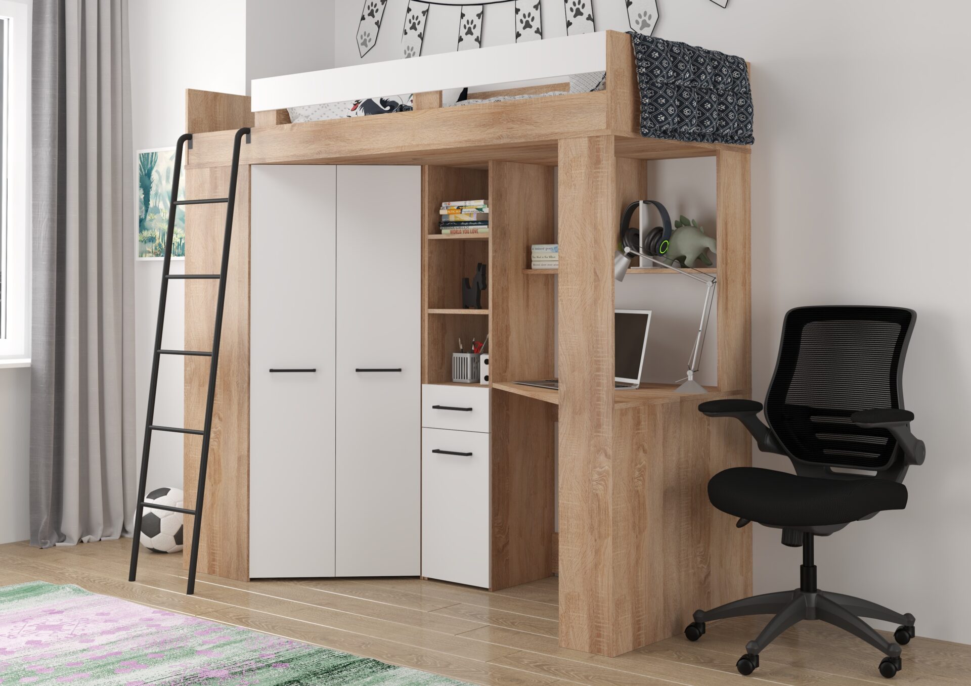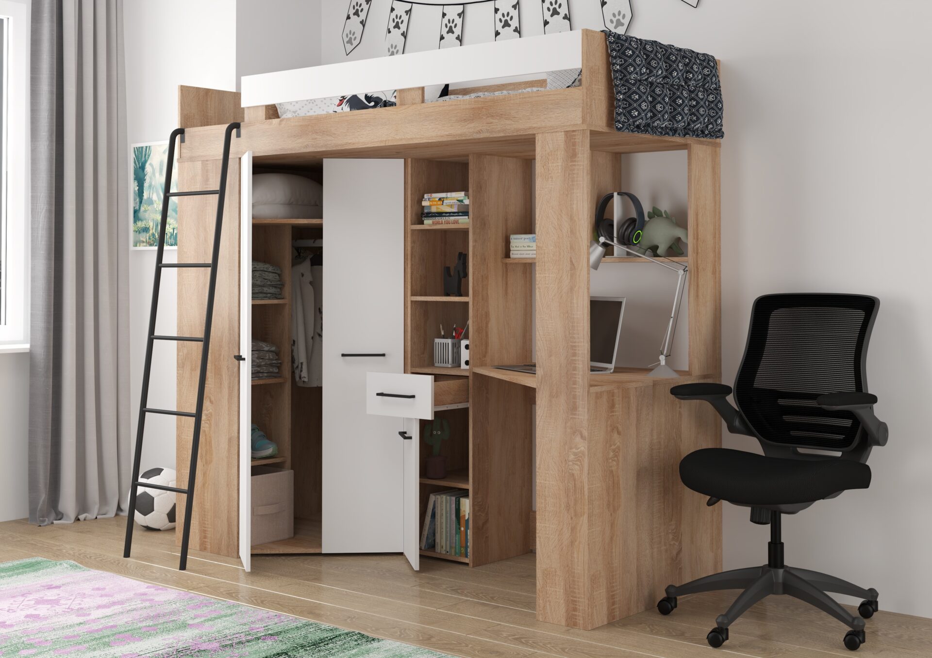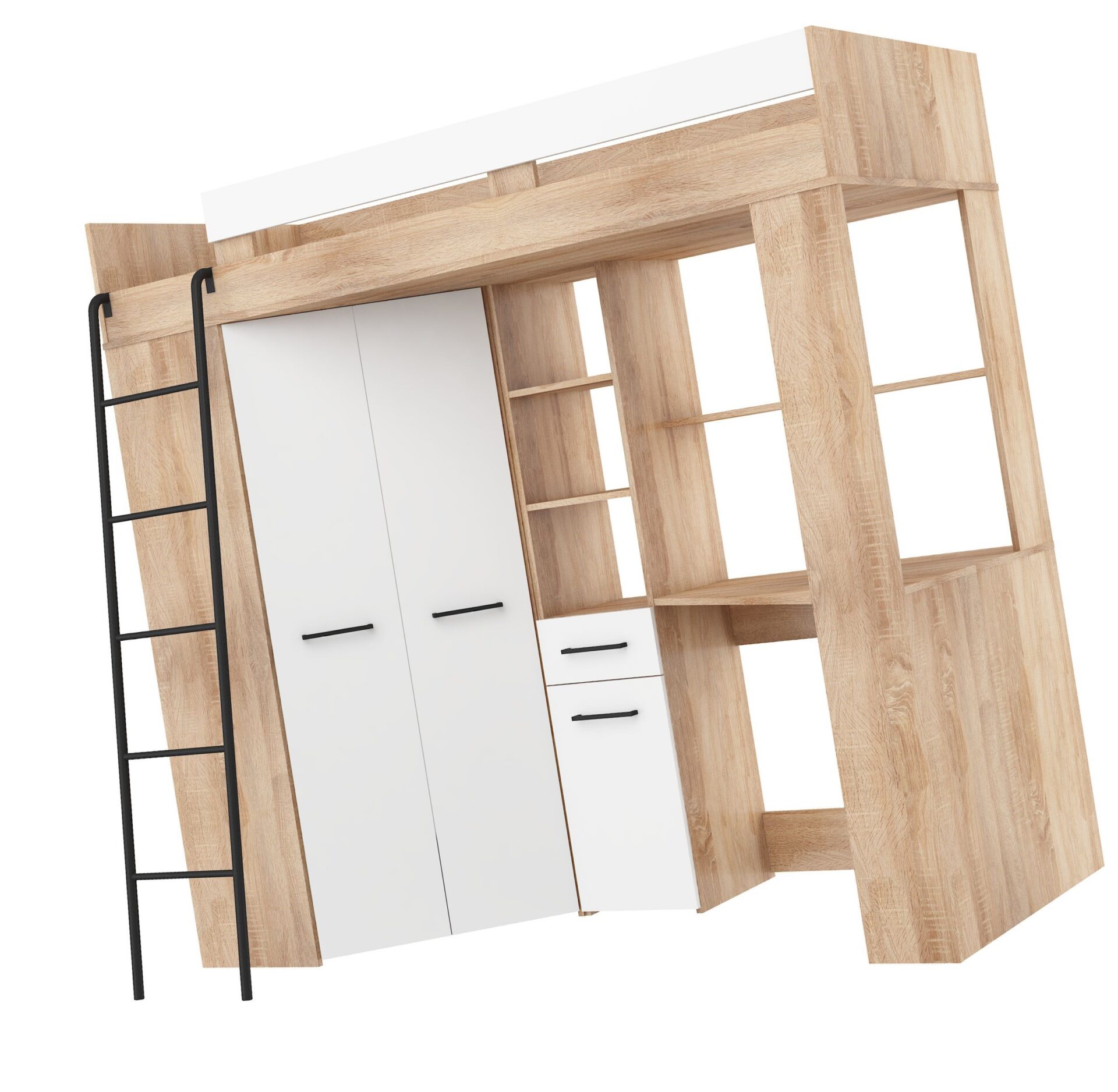 Антресоль FLO L без матраса 80×200, доска 16 мм, кромка из ABS-пластика, бесшумное открывание, максимальная высота матраса 12 см, цвет: дуб Сонома / белый