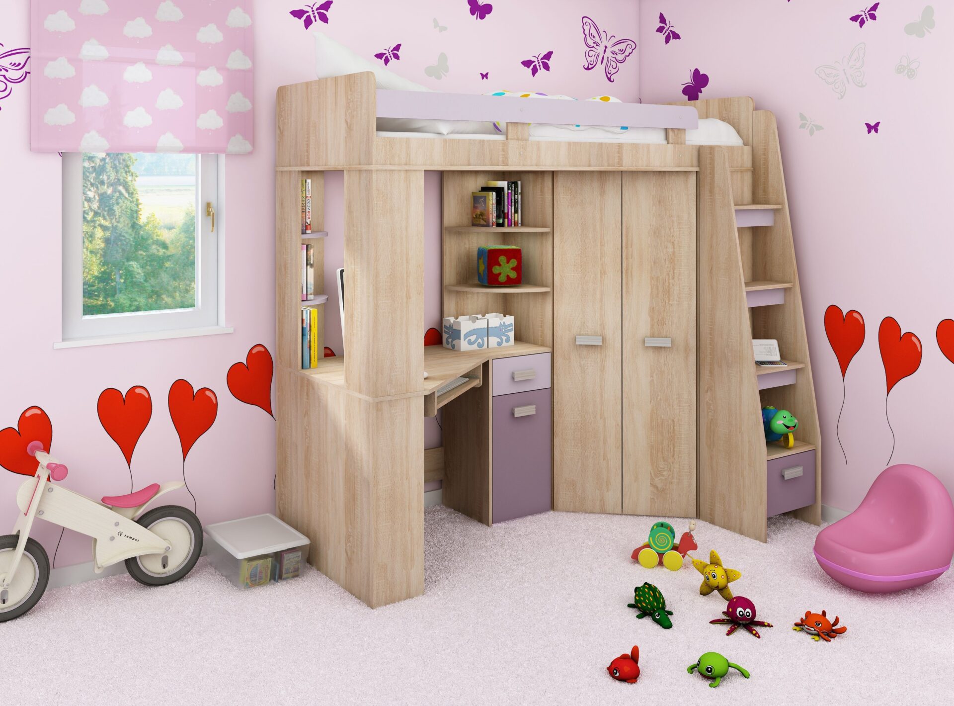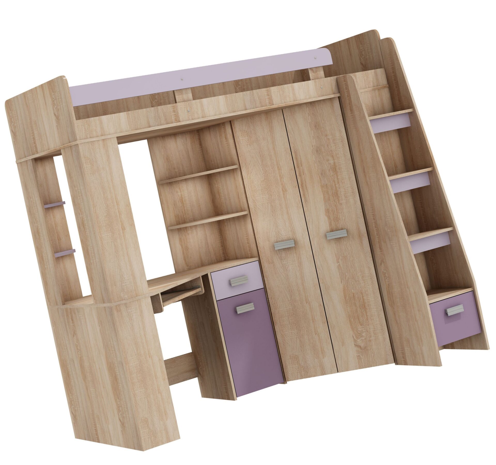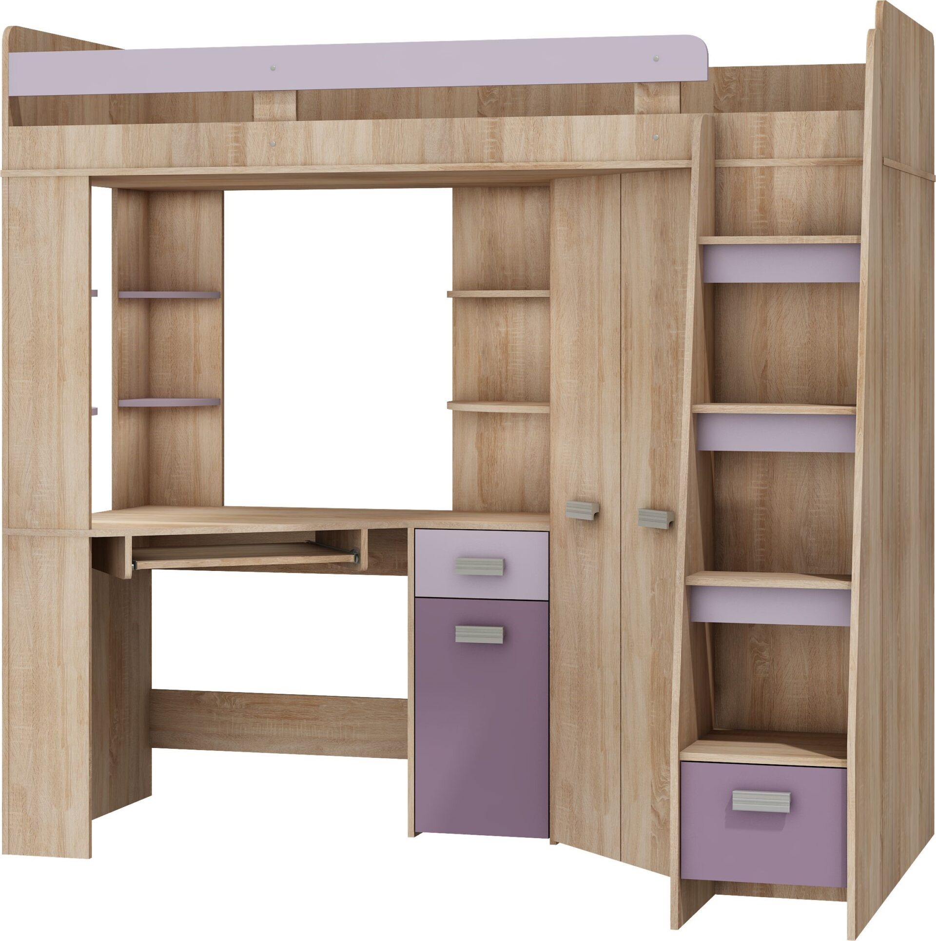 Антресоль SOLA P без матраса, 80×200, доска 16 мм, кромка из ABS-пластика, максимальная высота матраса 10 см, цвет: дуб Сонома / лаванда / фиолетовый