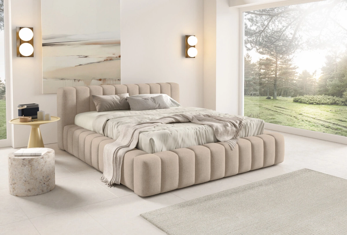Элегантная крупная строчка на изголовье придает кровати неповторимую мягкость.