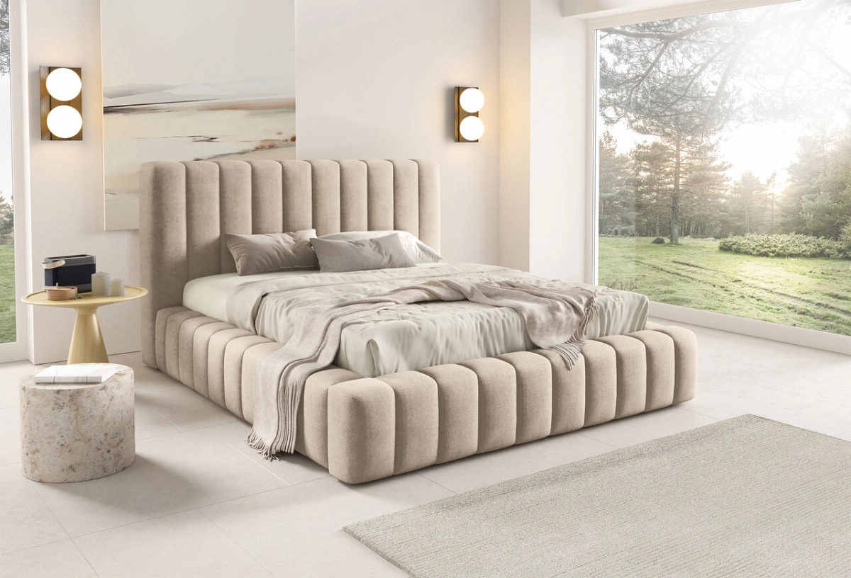 Элегантная крупная строчка на изголовье придает кровати неповторимую мягкость.