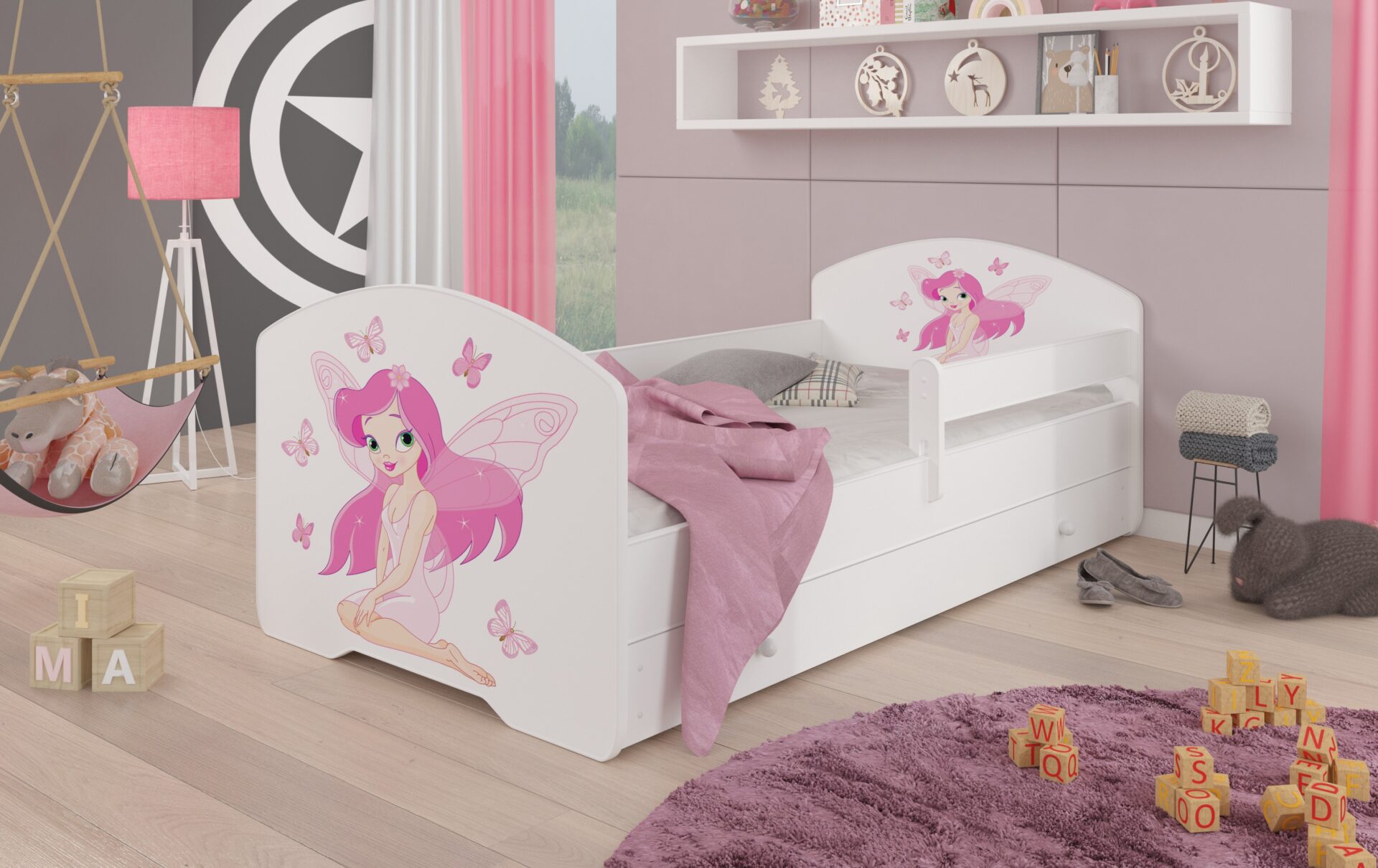 Lova su čiužiniu, skersiniu ir stalčiumi PEPE MERGINA SU SPARNAIS 160×80 balta ADRK