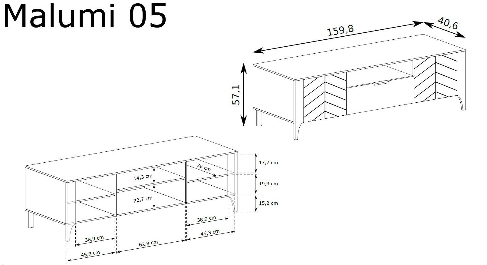 Тумба под телевизор MALUMI-5 — это воплощение современного дизайна и функциональности, несомненно, привлекающее внимание в любой гостиной. Изготовленная из высококачественных материалов, её чёрная отделка Painflow подчёркивает элегантность и стиль, идеально вписываясь как в классические, так и в современные интерьеры. Изысканный узор «ёлочка» на фасадах придаёт изделию вневременной характер, который порадует даже самых взыскательных ценителей эстетики. Практичность — ключевое преимущество тумбы MALUMI-5. Два запирающихся шкафа с просторными полками и центральный ящик обеспечивают идеальное место для хранения различных аксессуаров и мелких предметов, которые вы хотите держать под рукой. Кроме того, специальное место для телевизионной аппаратуры, где вы можете удобно разместить плееры, консоли и декодеры, делает это изделие практичным дополнением к любой гостиной. Прочные ножки не только добавляют элегантности, но, прежде всего, обеспечивают устойчивость и несущую способность, что крайне важно для функциональной мебели. Полная гармония глубокого чёрного оттенка с различными вариантами интерьера создаёт атмосферу современности и класса, делая MALUMI-5 идеальным предметом мебели для тех, кто ценит как эстетику, так и практичность.