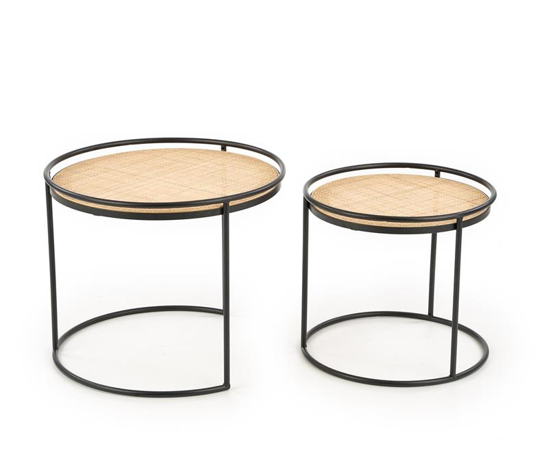 Размеры: 51/42, 41/37 см, материал: натуральный ротанг / сталь с порошковым покрытием, цвет: натуральный / черный