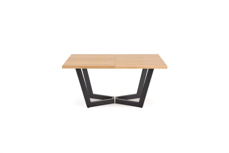 Раздвижной стол, размеры: 160-250(340)/90/77 см; материал: столешница – шпонированная доска, кромки из массива дерева, ножки – сталь с порошковым покрытием, цвет: столешница – натуральный дуб, ножки – черный, * опционально: большая раздвижная столешница (размеры: 45×90 см – 2 шт.)