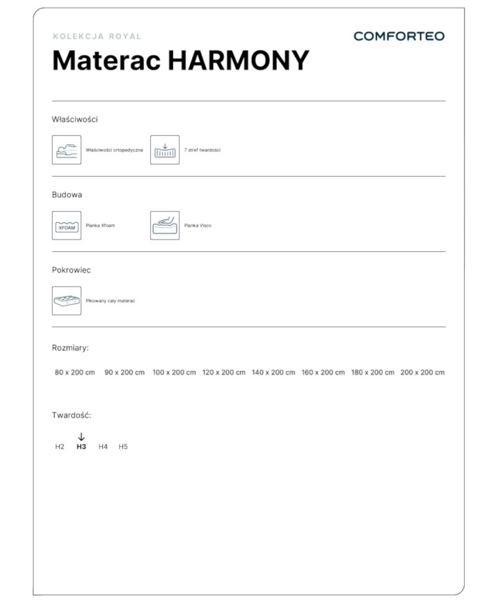 Harmony čiužinys, 90×200 cm, dvipusis, putplastis, viskoelastinis ir Xfoam, H3, Comforteo