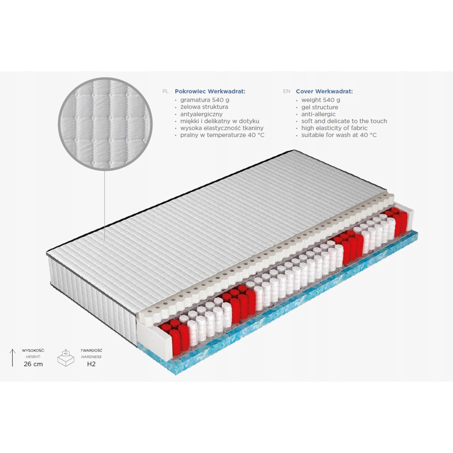 Матрас Live Buriano — это современный матрас с независимыми пружинами, разработанный для тех, кто ценит здоровый, гигиеничный и комфортный сон. Его основание выполнено из прочных независимых пружин, которые обеспечивают оптимальную циркуляцию воздуха и защищают внутреннее пространство от влаги, плесени и пылевых клещей. Конструкция дополнена органической пеной и слоем латекса, что позволяет матрасу точно повторять естественные изгибы тела и гарантировать надежную поддержку позвоночника. Это идеальный выбор для тех, кто ищет комфорт премиум-класса в сочетании с долговечностью и натуральными материалами.