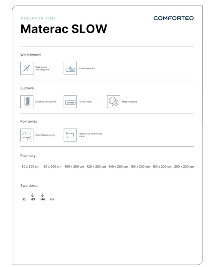 Lėtas čiužinys, 200×200 cm, dvipusis, kišeninės spyruoklės, kokosas, „Xfoam“, H3/H4, „Comforteo“