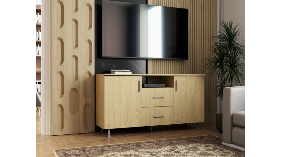 Эта тумба под телевизор шириной 135 см — идеальный выбор для тех, кто ищет функциональный и эстетически привлекательный предмет мебели для небольших помещений. Ее компактный дизайн делает ее идеальной для спален, гостиных, детских комнат или гостевых комнат. Несмотря на небольшой размер, она предлагает удивительно много места для хранения и отлично выглядит.