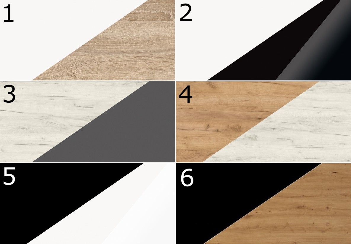 Варианты цвета: белый / светлый Sonoma, белый / глянцевый черный, белый / графитовый Craft Oak, золотой Craft Oak / белый Craft Oak, черный / глянцевый белый, черный / ремесленный дуб