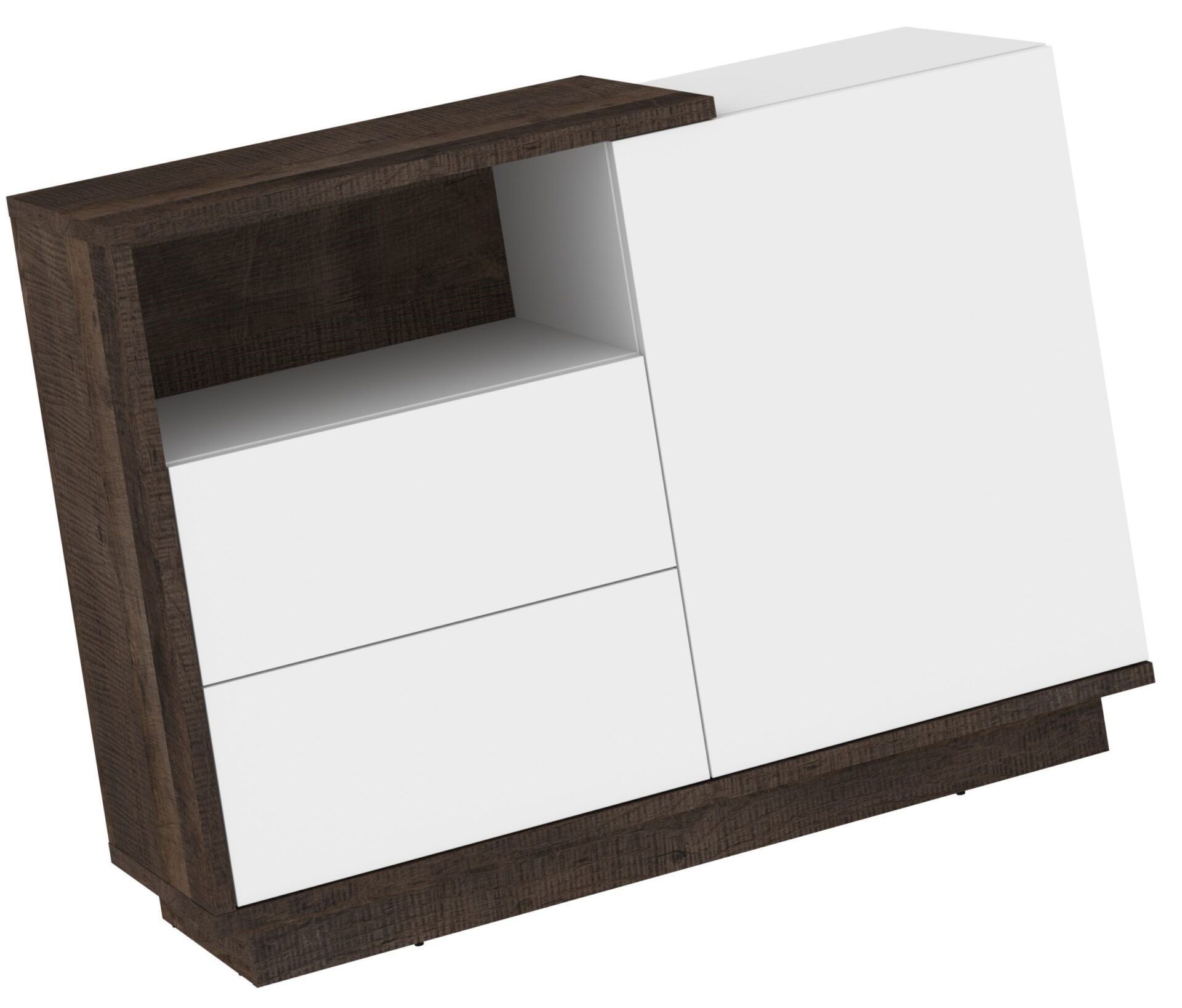 BRITA 03 baldų komoda su durelėmis ir lentyna, Grange ąžuolas, balta blizgi spalva