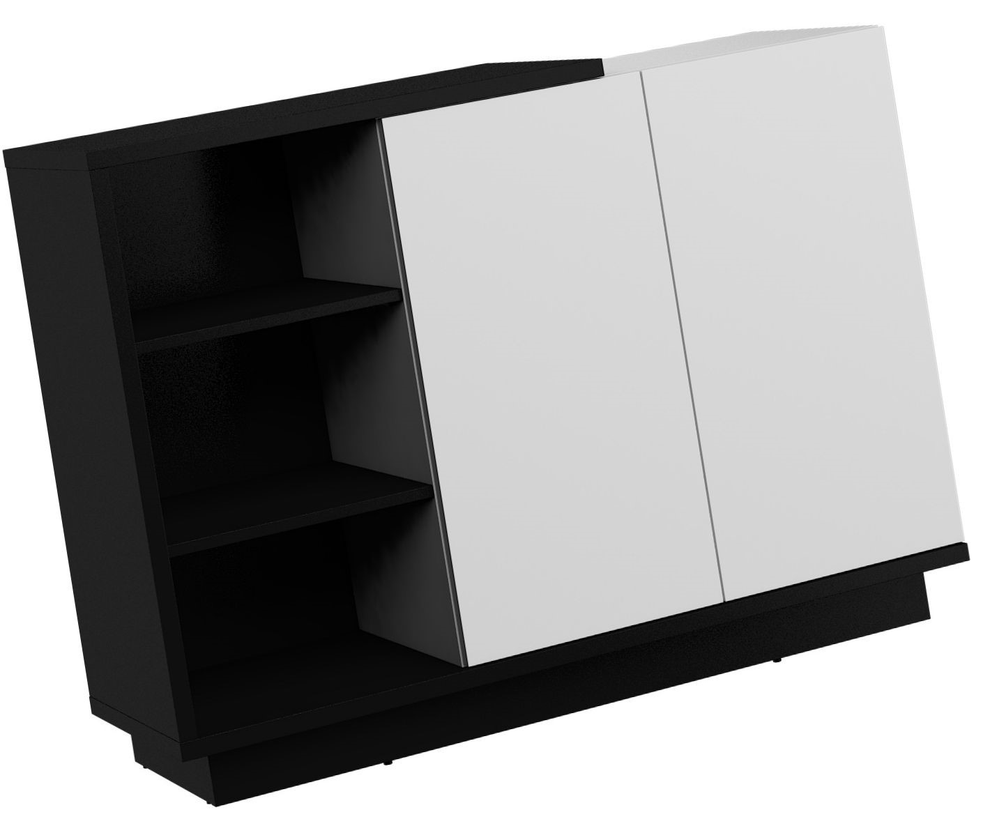 BRITA 05 baldai, komoda su durelėmis ir lentynomis, juodai balta blizgi
