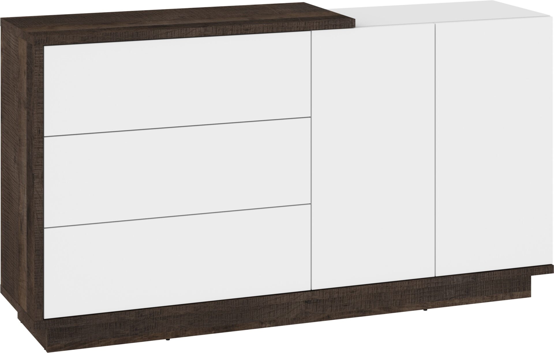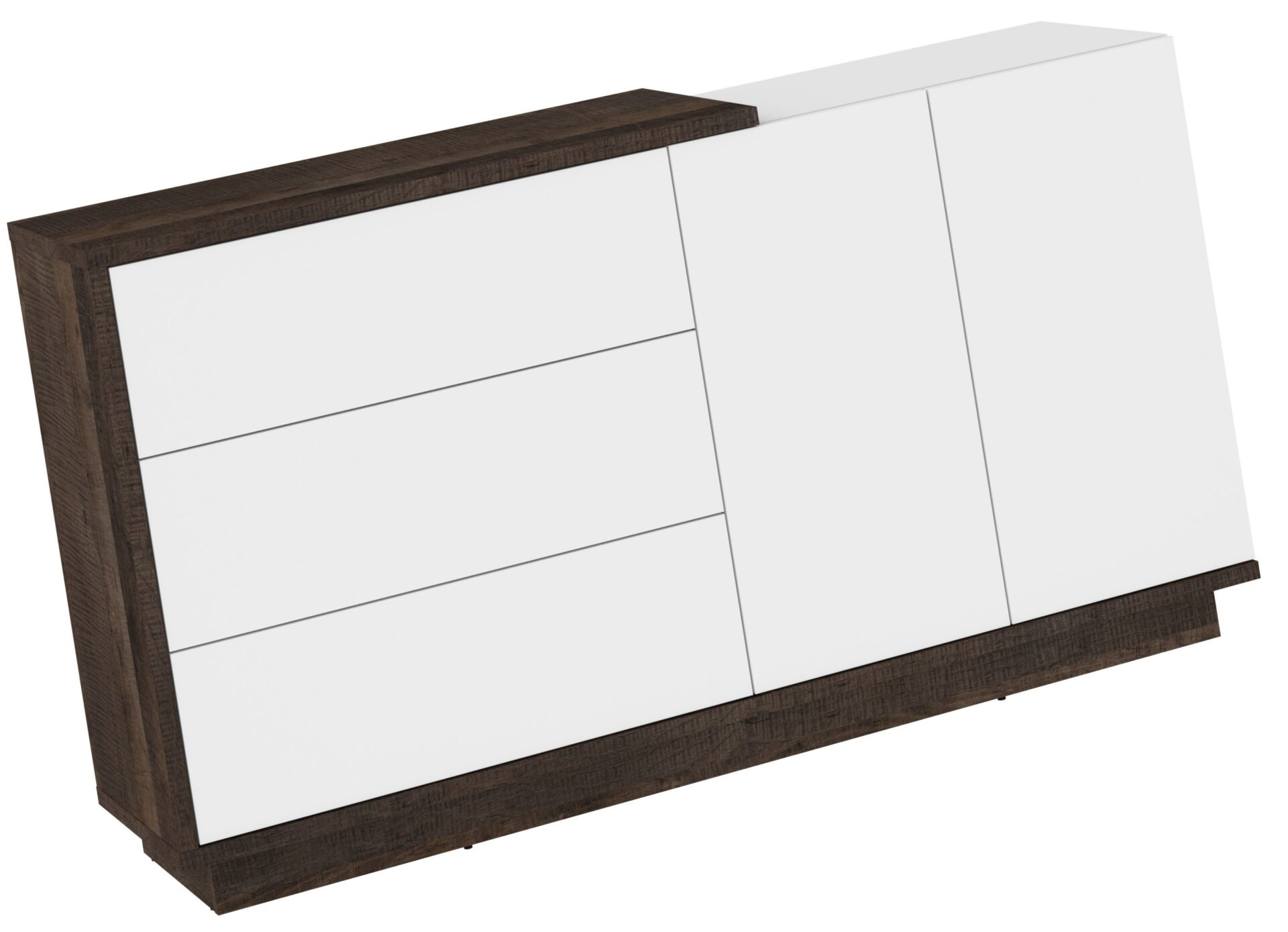 BRITA 07 didelė komoda su durelėmis, pagaminta iš ąžuolo medienos (grange), blizgios baltos spalvos