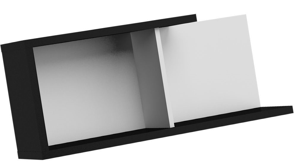 Мебель изготовлена из ДСП толщиной 16 мм и 25 мм с кромкой из АБС-пластика. Цвета: черный/белый.
