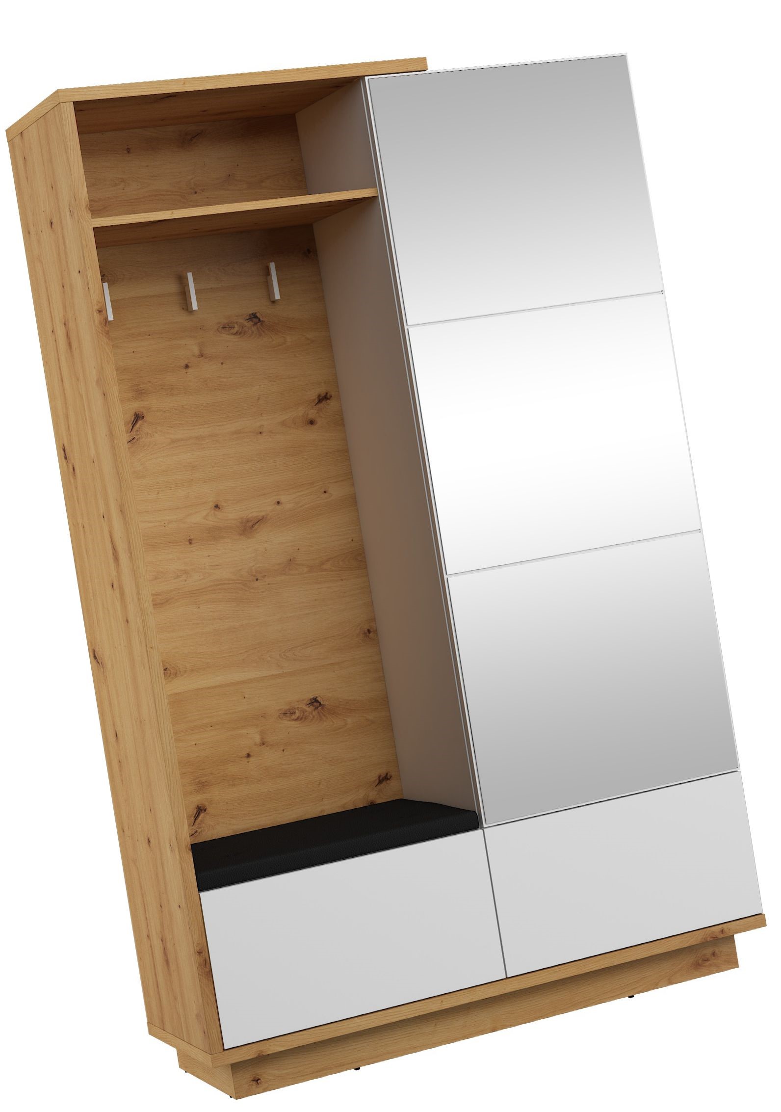 BRITA 16 baldų prieškambario spinta su sėdyne, ąžuolo dirbiniai, balta blizgi spalva