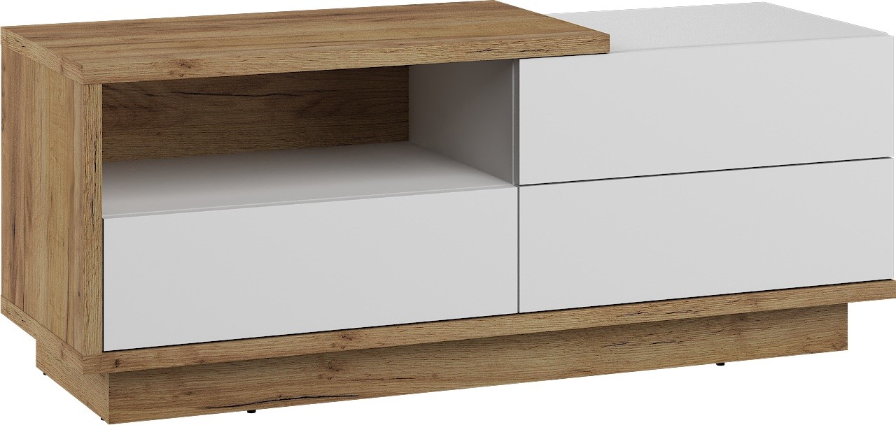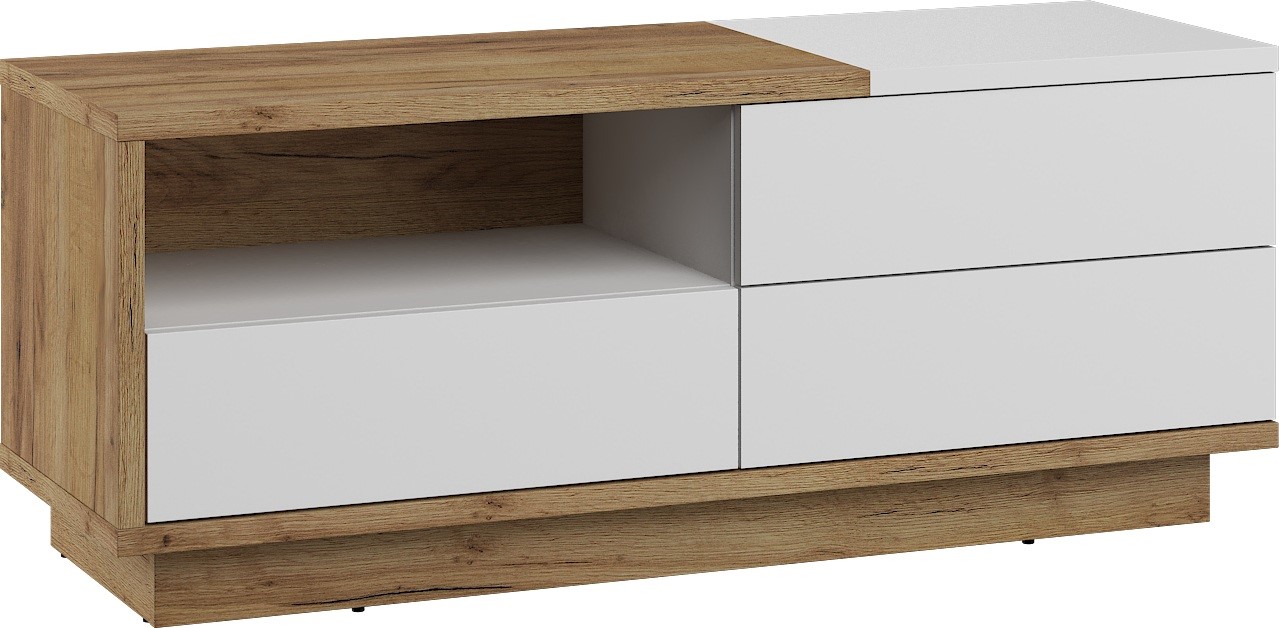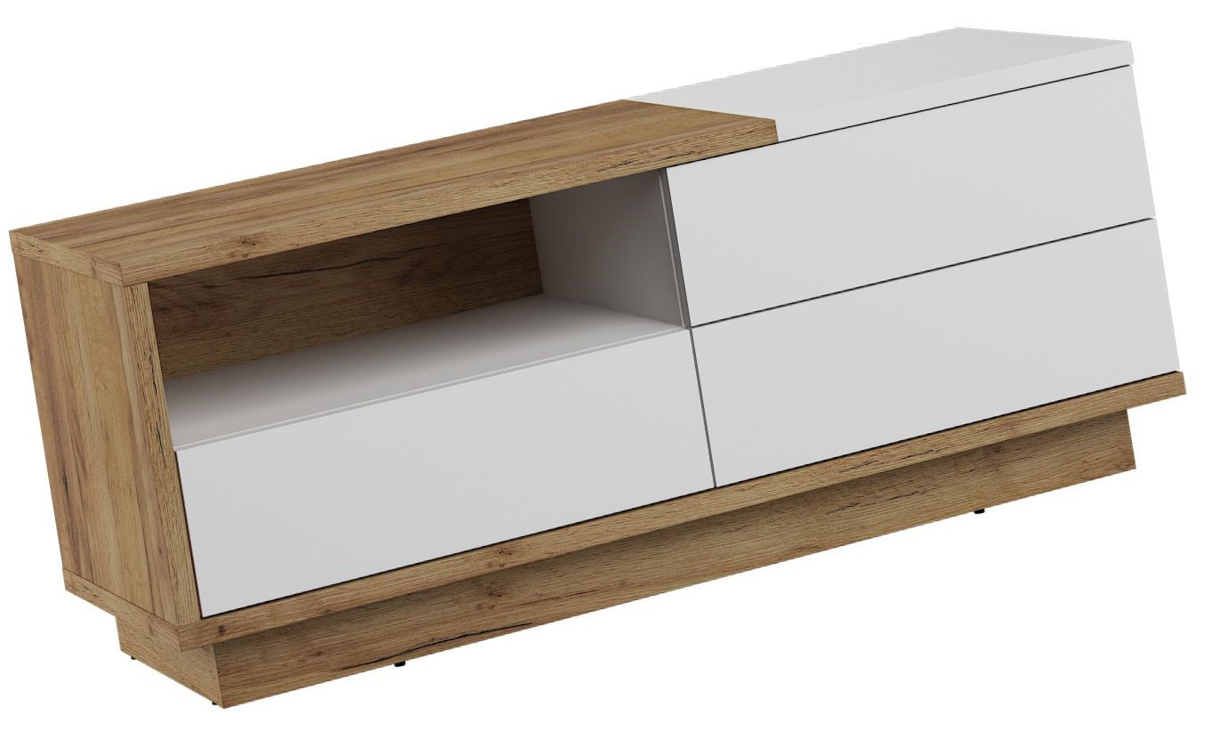 BRITA 20 baldų komoda, stalas, TV spintelė su stalčiumi, ąžuolas, aukso spalvos, balta