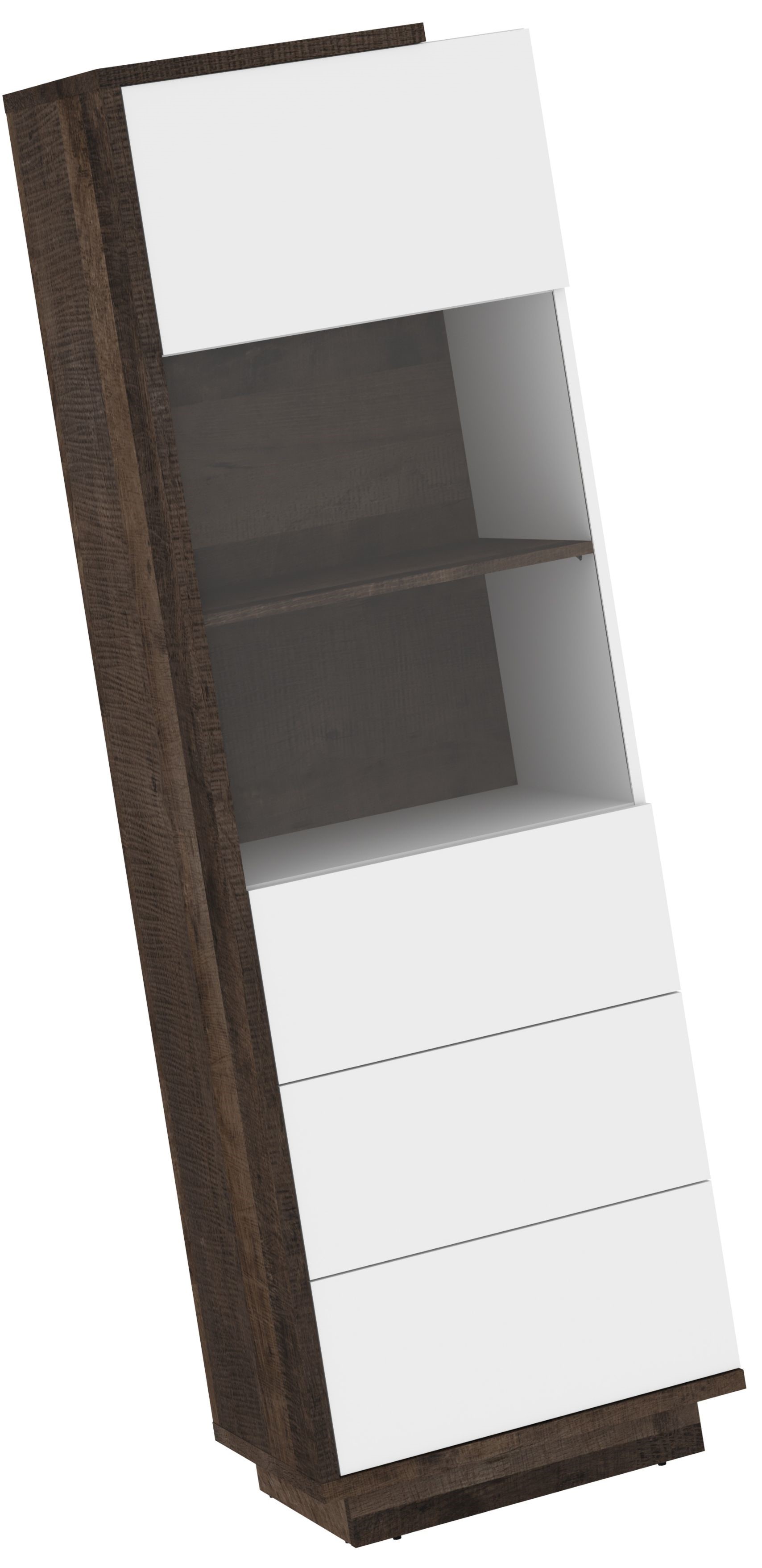 BRITA 27 baldai, aukšta vitrina svetainei, ąžuolas „Grange“, balta blizgi spalva