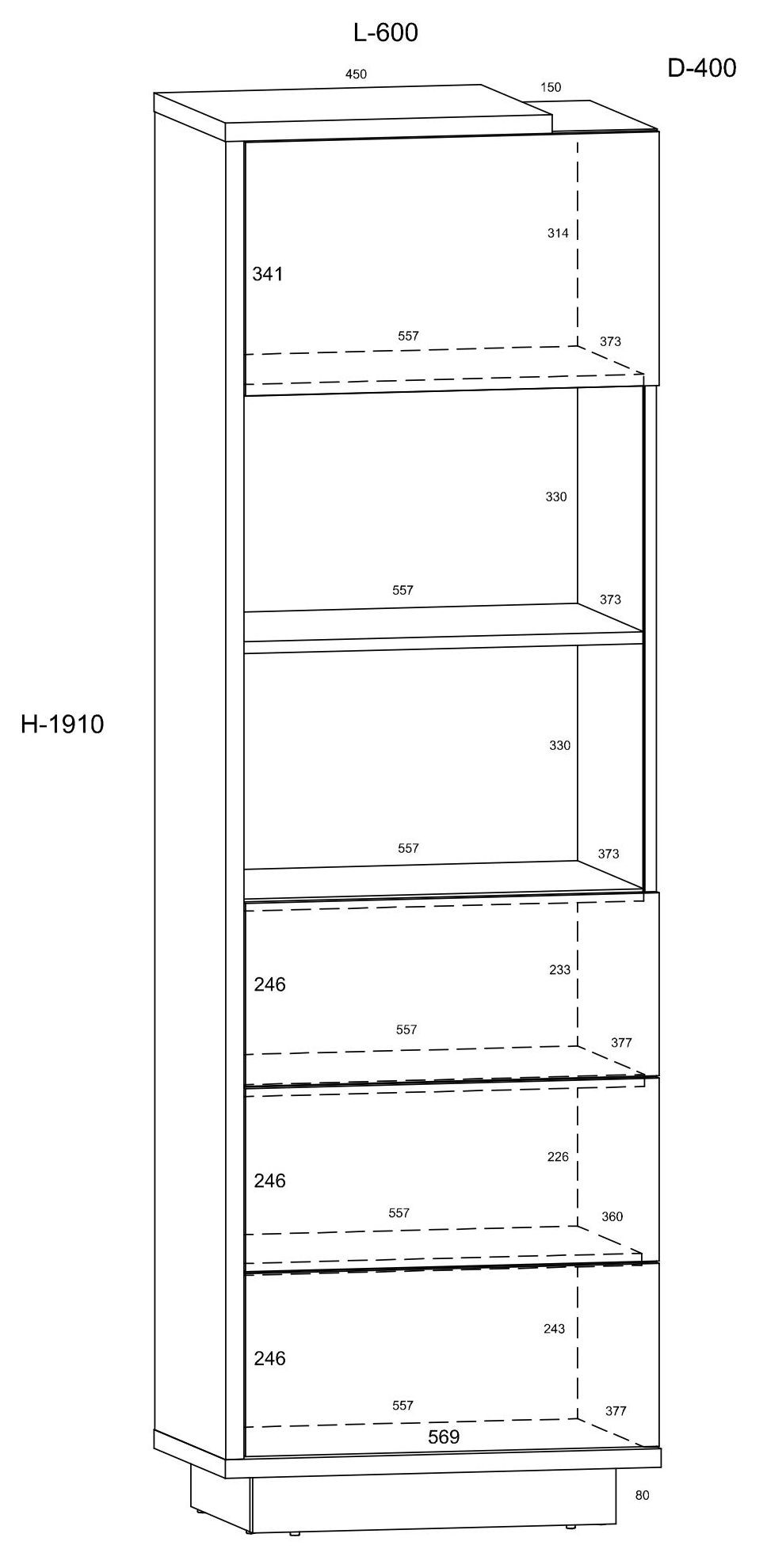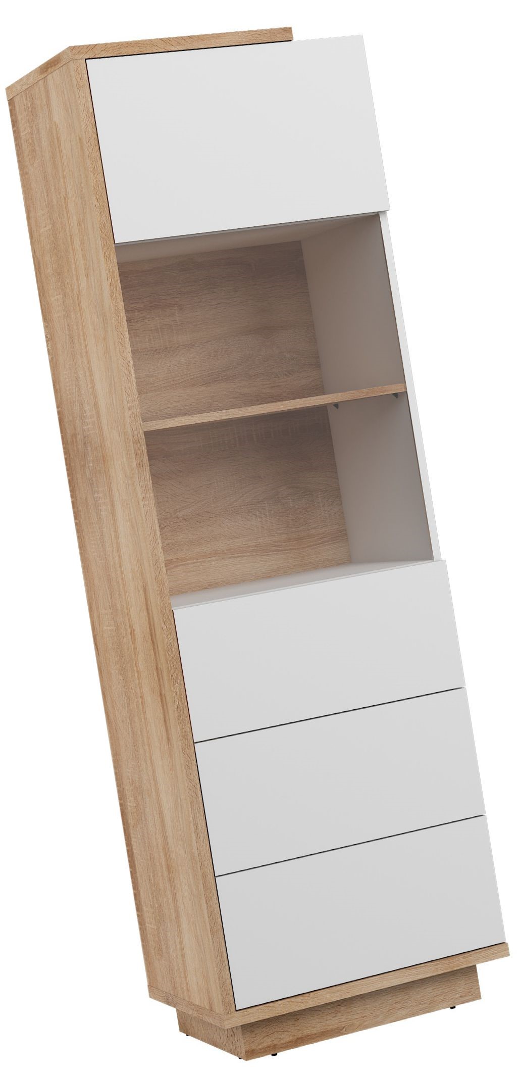 BRITA 27 aukšta vitrina svetainei, Sonoma ąžuolas, balta blizgi spalva