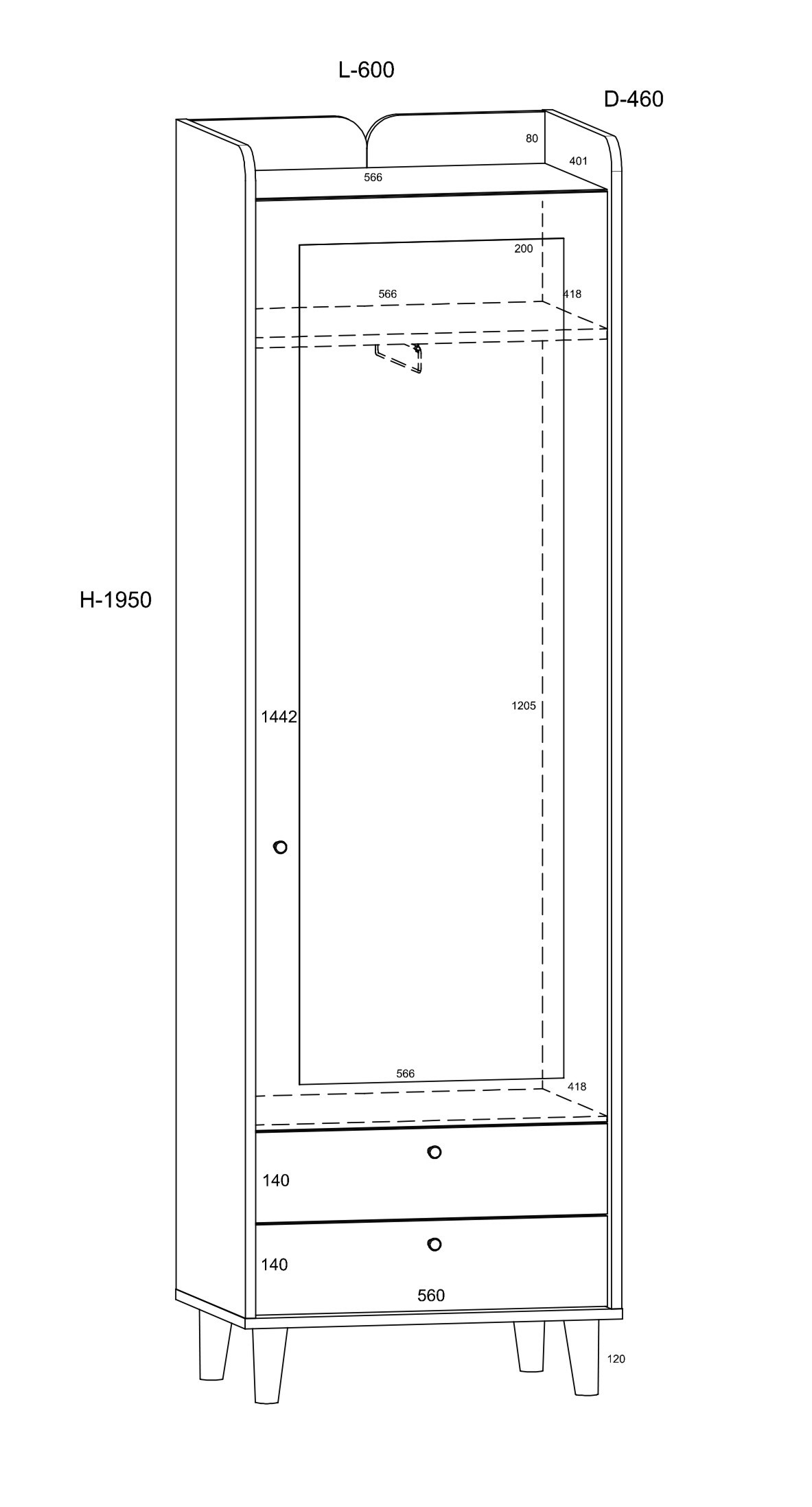 Мебель изготовлена из ДСП толщиной 16 мм и 22 мм с кромкой из АБС-пластика. Ящики и дверцы оснащены механизмом плавного закрывания. Деревянные ножки доступны в различных вариантах высоты: 12 см, 30 см и 62 см.