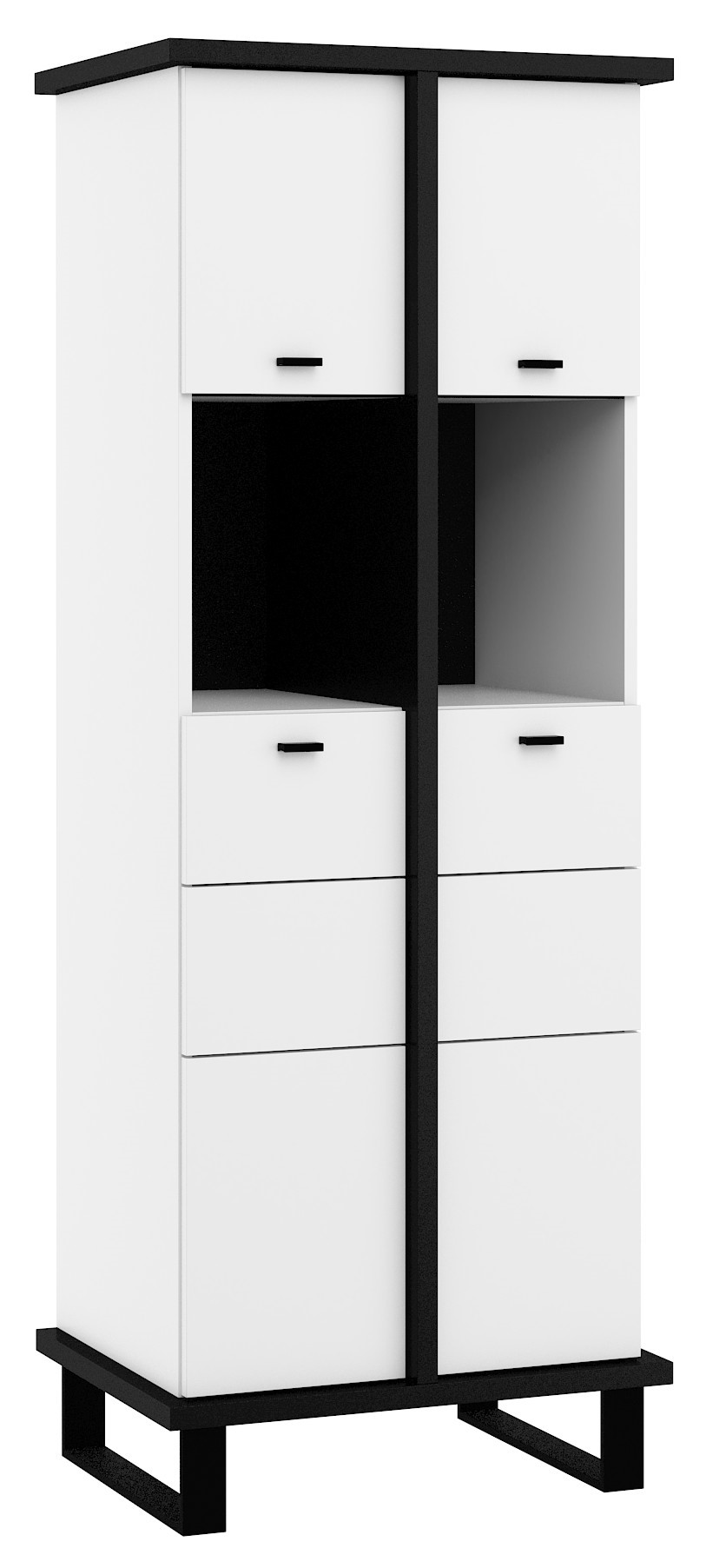 Мебель изготовлена из ДСП толщиной 16 мм и 25 мм с кромкой из АБС-пластика. Ящики и дверцы оснащены механизмом плавного закрывания. Металлические ножки доступны в различных вариантах высоты: 12 см, 22 см и 73 см.