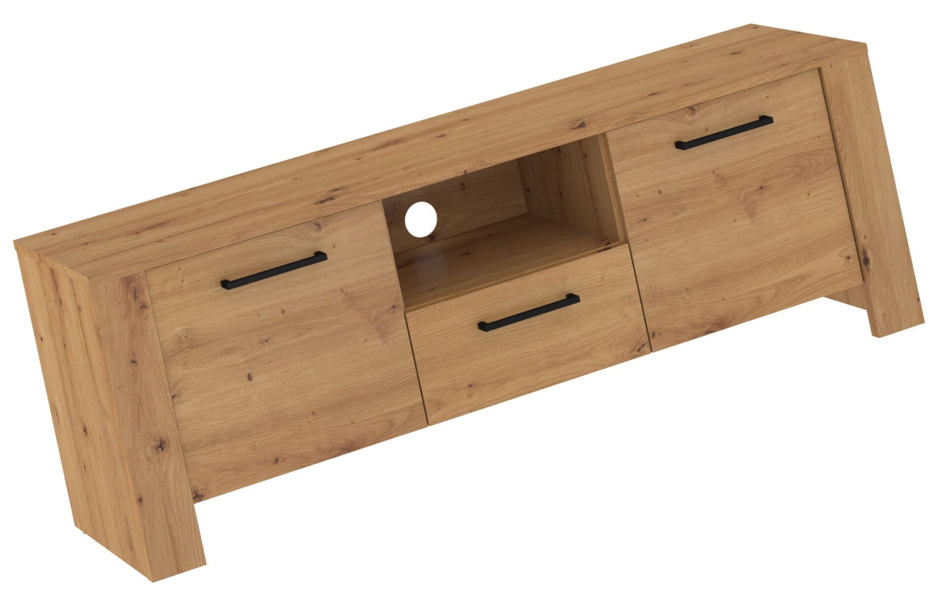 Комод DELIS 10, тумба под телевизор, 140 см, для гостиной. Материалы: ДСП 16 мм и 25 мм, кромка из ABS-пластика, доводчики, направляющие полного открывания. Цвет: дуб ручной работы.