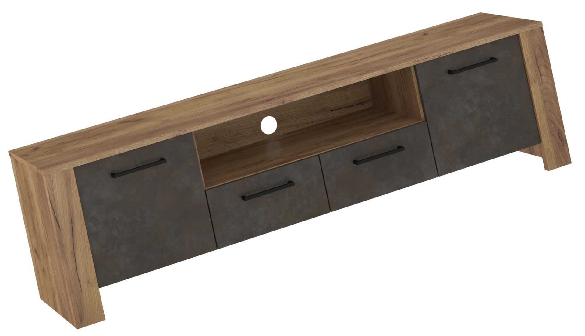 Комод DELIS 11, тумба под телевизор, 175 см, для гостиной. Материалы: ДСП 16 мм и 25 мм, кромка из ABS-пластика, доводчики, направляющие полного открывания. Цвет: золотистый дуб / коричневый «Гранада».