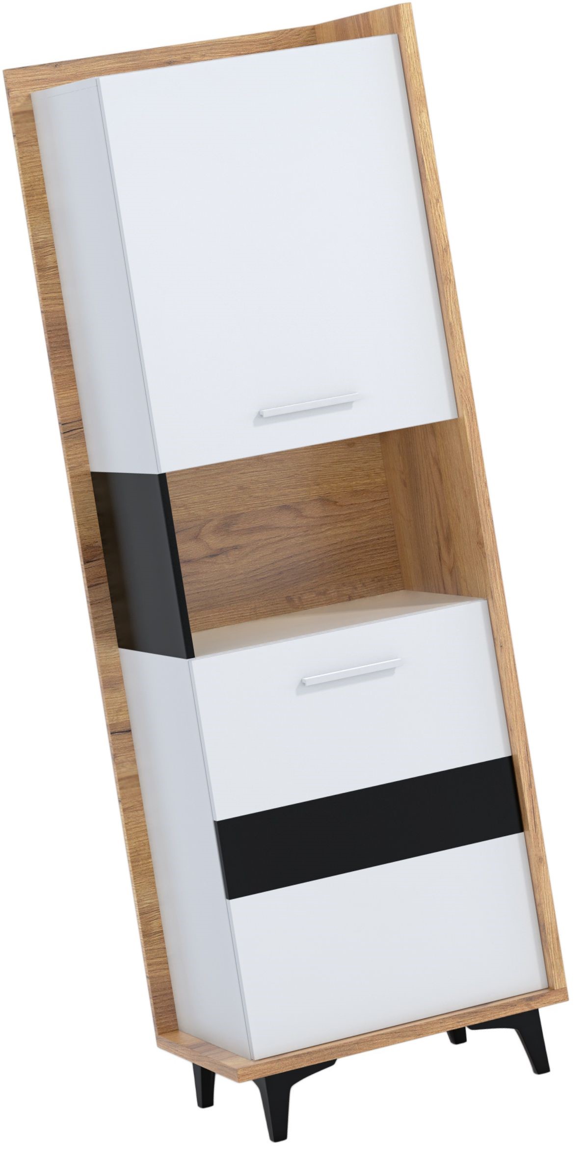 DOX 07 baldų uždara knygų lentyna su durelėmis, ąžuolas, balta, juoda