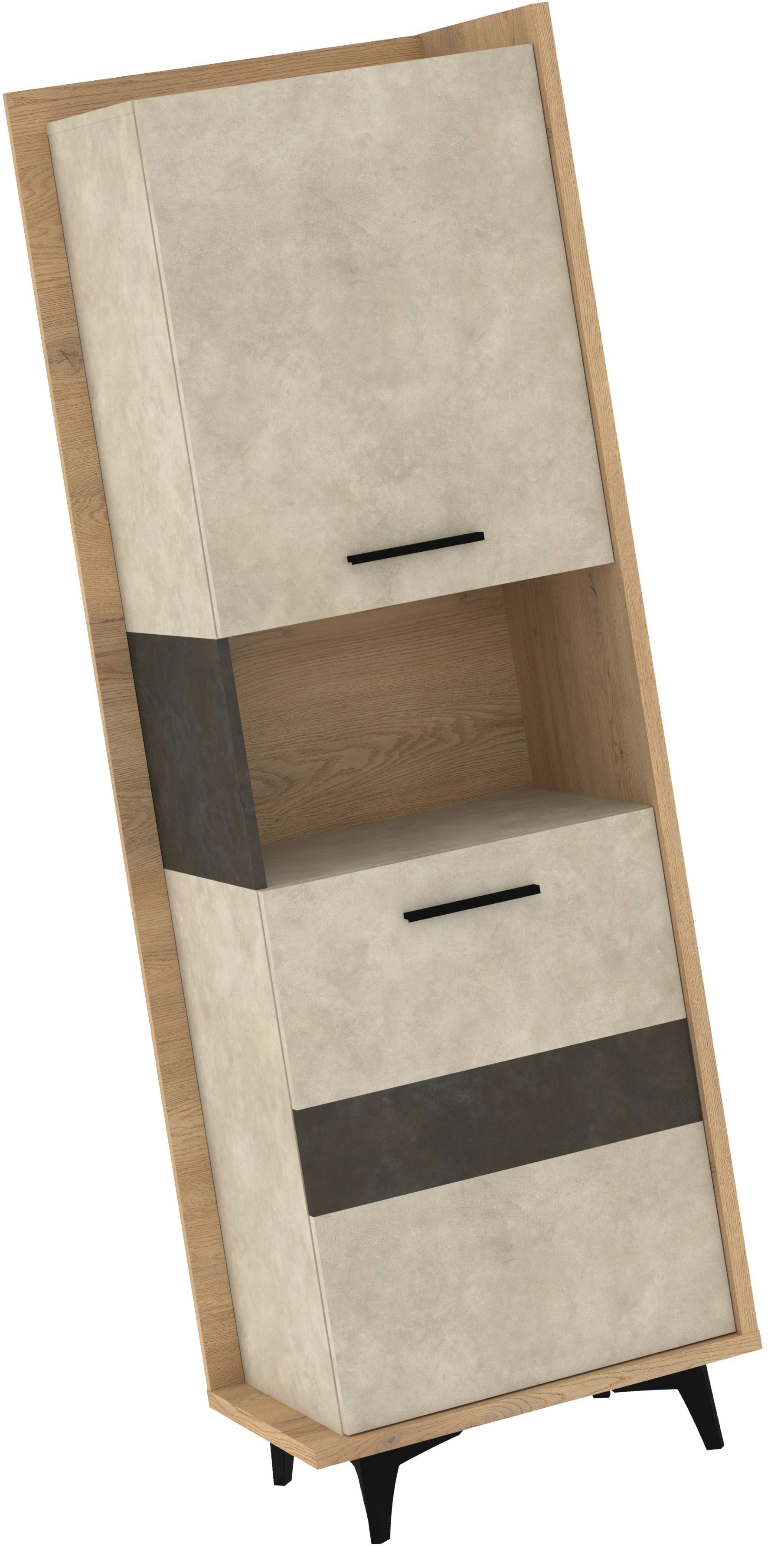 DOX 07 baldai, uždara knygų lentyna su durelėmis, ąžuolas „Cremona Granada“, migdolų spalva