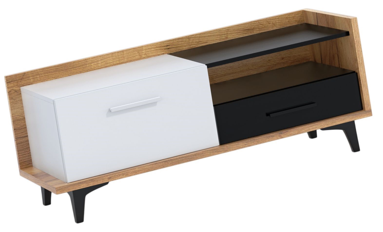 DOX 08 baldai, maža komoda, stalas, TV spintelė su stalčiumi, rankdarbių reikmenys, balta, juoda