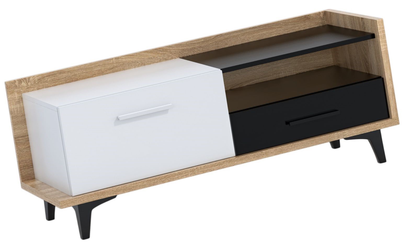 DOX 08 baldai, maža komoda, stalas, TV spintelė su stalčiumi, Sonoma, balta, juoda