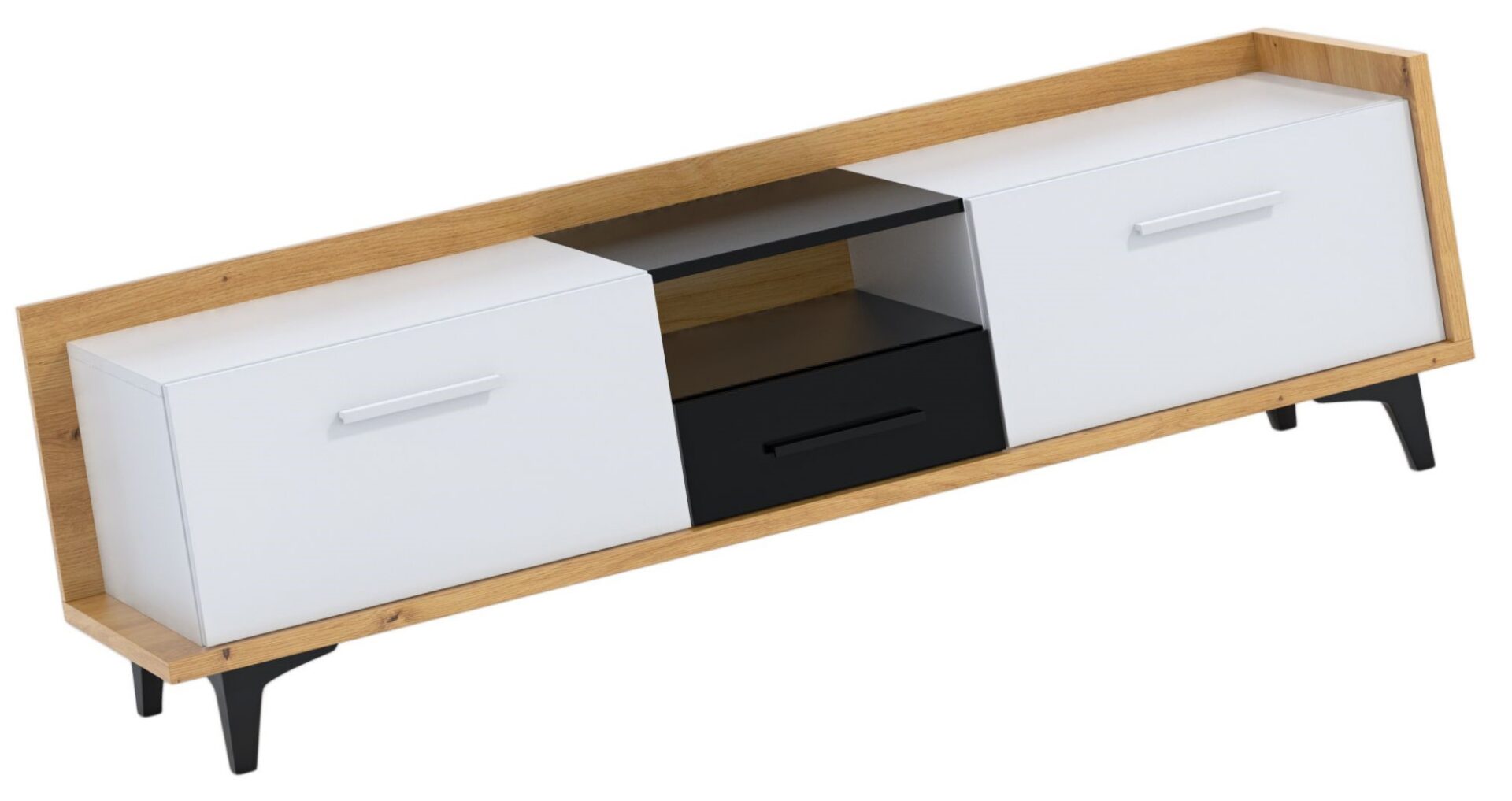 DOX 09 baldai, didelė komoda, stalas, TV spintelė su stalčiumi, artisan, balta, juoda