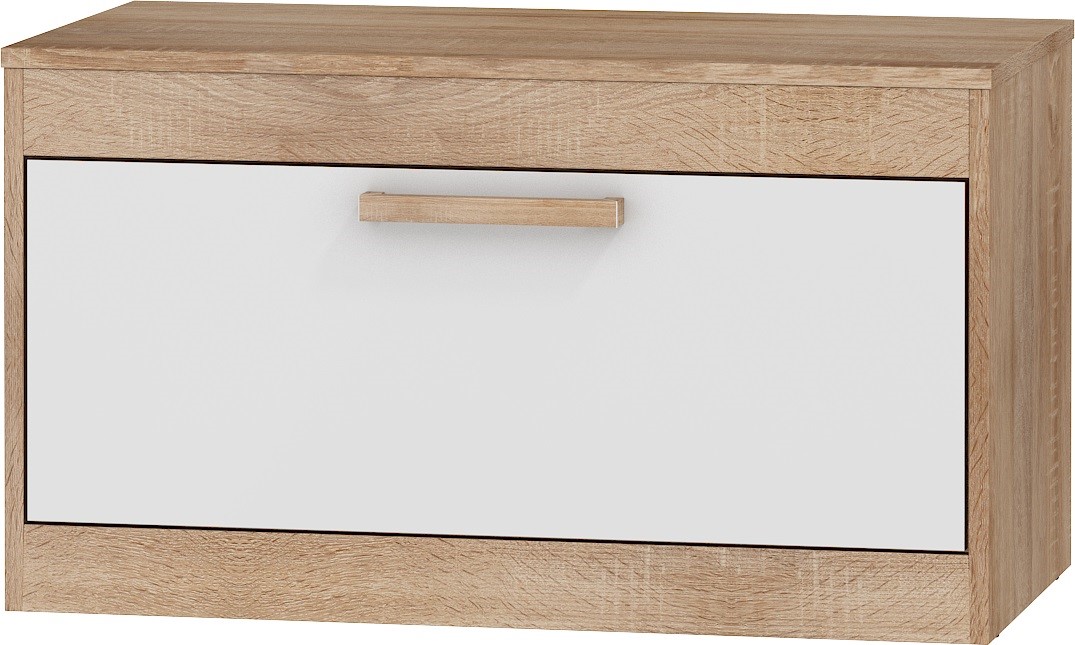 Мебель изготовлена из ДСП толщиной 16 мм и 25 мм с кромкой из АБС-пластика. Ящики и дверцы оснащены системой плавного закрывания. Доступные цвета: Дуб «Артизан» / глянцевый белый, Дуб «Светлый Сонома» / глянцевый белый, Дуб «Бордовый» / глянцевый белый, Дуб «Золотой Крафт» / белый Крафт.