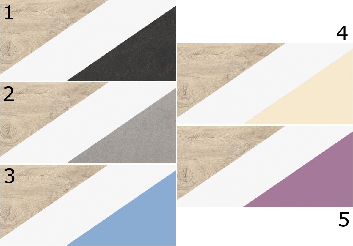 Доступные цвета: Дуб с торцевым срезом / Белый / Черный бетон, Дуб с торцевым срезом / Белый / Серый бетон, Дуб с торцевым срезом / Белый / Синий, Дуб с торцевым срезом / Белый / Кремовый, Дуб с торцевым срезом / Белый / Лавандовый
